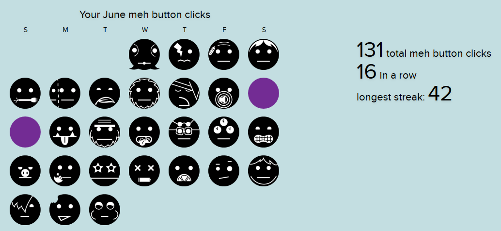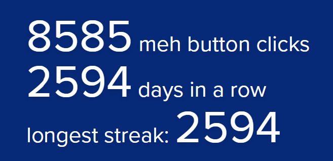 Meh’s 1st birthday, there was like 15 or so people who had perfect “meh” button streaks.