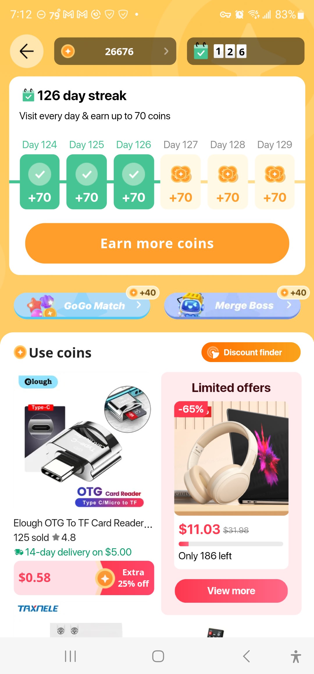 I also had a 126 day streak going on Aliexpress check-ins until we had a meh-rathon and I paid more attention to the 'thon than aliexpress so I started over. I’m currently at 90 checkins in a row.