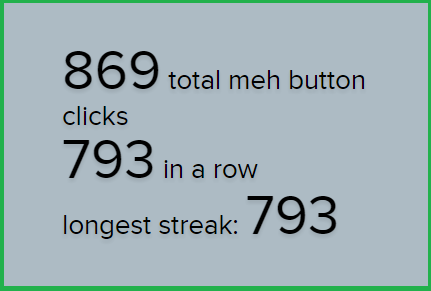 @RiotDemon So…if you miss a day and don’t buy the item, you also missed clicking the meh button…so the number 60 means nothing.