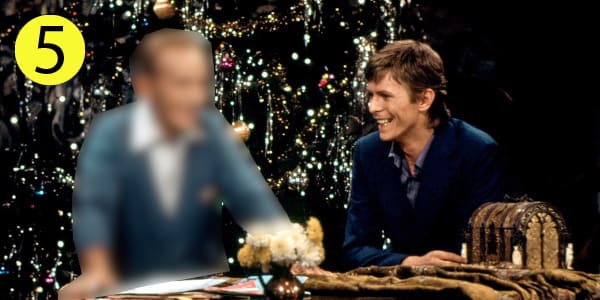 8If you spend several decades exploring every byway of pop music, you’re bound to hook up with some interesting cats. But David Bowie’s many musical liaisons make maybe the most fascinating roster of collaborators in the game. Here he is with five blurred-out duet partners. Name all five before anybody else does and you’ll score a $5 Meh coupon. Insert signoff catchphrase here!