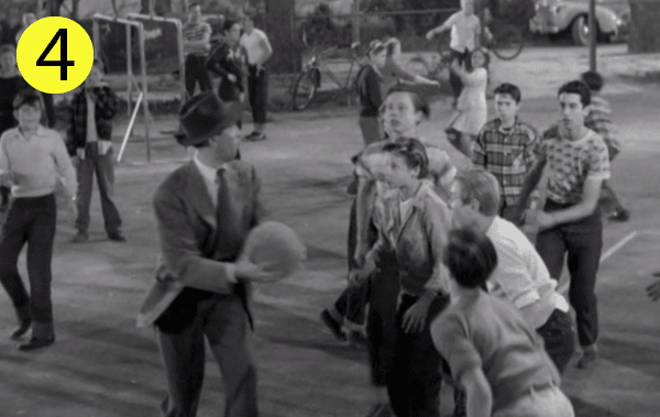 I assumed he was holding the ball in 4. Could he be one of the kids?