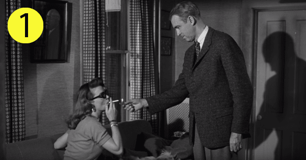 6We’re gonna try something a little different today. I have assembled five movie stills from the prolific and varied career of America’s Best Pal, Jimmy Stewart. You need not necessarily name them (although the more you recognize, the easier this will be). Your task is to list the five photos in chronological order by release date of the film shown. Make sense? Just list them from oldest to youngest, like this: 3, 1, 6, 5, 2. (Those aren’t the answers and there is no 6.)