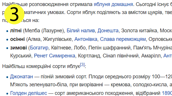 3 https://uk.wikipedia.org/wiki/Яблуко#Походження%D1%82%D0%B0_%D1%81%D0%BE%D1%80%D1%82%D0%B8_%D1%8F%D0%B1%D0%BB%D1%83%D0%BA