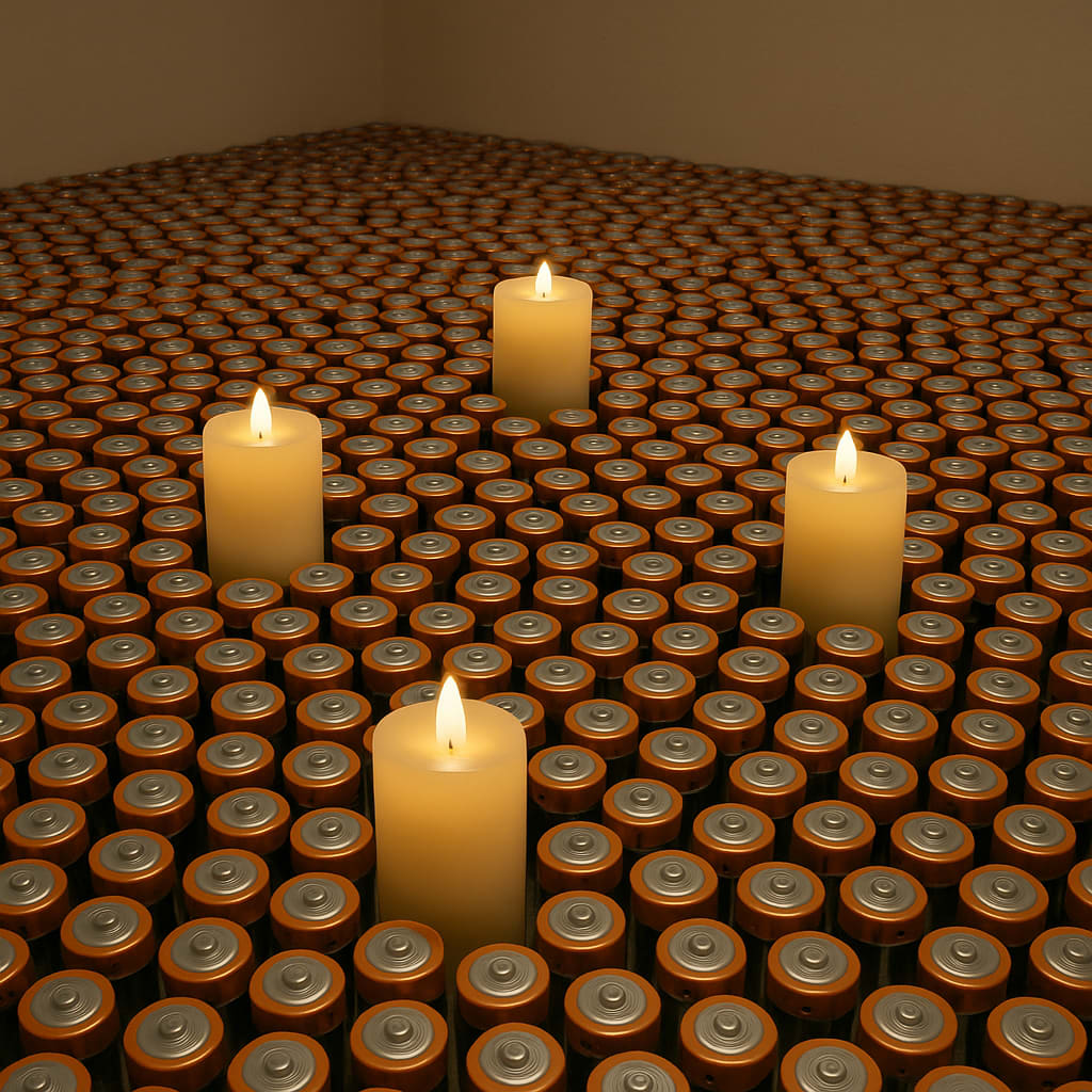 /showme Four electric candles and 4 thousand D batteries filling up room.