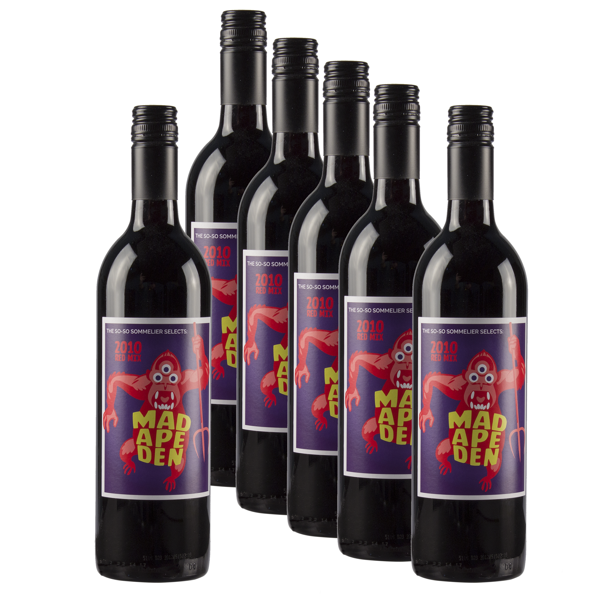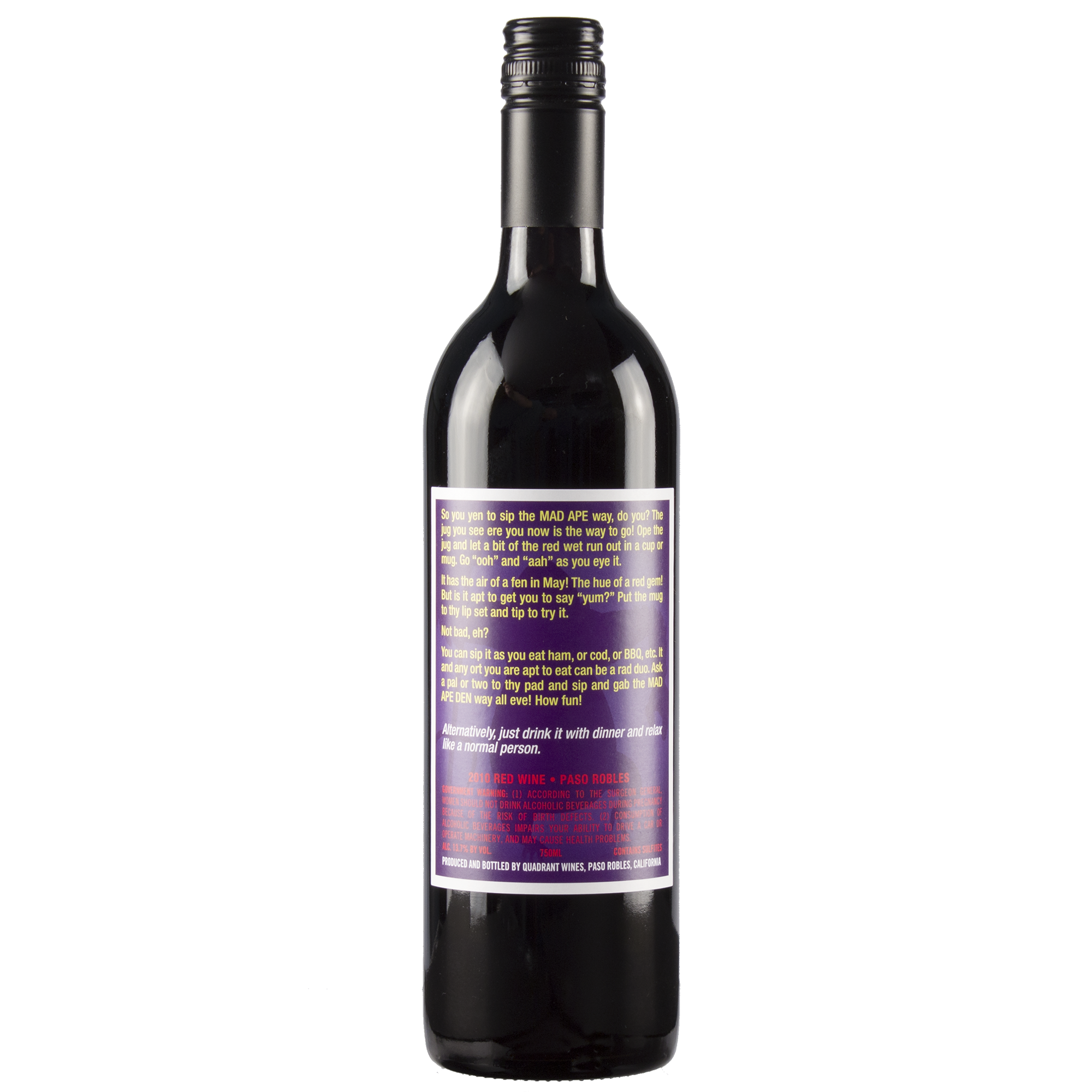 Specs====- Model: MAD-Red-Mix-001- Condition: New- Wine is sold by licensed winery - You must be 21 years or older to order - By placing an order you represent that you are at least 21 years of age - This item is only eligible for ground shipping - Alcohol cannot be delivered to a PO Box - Someone 21 years or older must be present to sign for the alcohol when it is delivered - We recommend shipping the wine to your business address - If visibly intoxicated upon delivery, you will not be allowed to receive the wine - Void where prohibited by law - We cannot ship to these states: AK, AL, AR, DE, HI, IN, KY, MS, OK, RI, UT- Your order will be canceled if you are shipping to one of the states above- The seller may delay shipment if the temperature at the shipping or delivery address is not between 35F and 85F.- Fancy wine notes: This Bordeaux style blend offers ripe fruit with a luxurious texture. The Merlot base creates the foundation for its medium body that lends itself nicely to a multitude of food pairings. The Cabernet Sauvignon brings the richness of such dark fruits as blackberries and blueberries. Dive deeper into the unending layers of this wine and youll find the Petit Verdot offers you the velvet soft tannins youre looking for. Beyond that, youll notice the Petite Sirah, though only a small percentage of this wine, is the powerhouse that gives this blend its gorgeous garnet color and long-lasting finish. - Blend: 60% Merlot, 20% Cabernet Sauvignon, 13% Petit Verdot, 7% Petite Sirah - Appellation: Paso Robles - Alcohol: 13.7% - pH: 3.54 - TA: 7.1 g/LWhat’s in the Box?====6x Mad Ape Den Wine bottlesPictures====BottlesBottleBottleThird eye irk