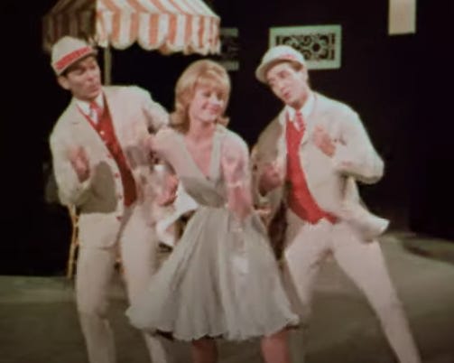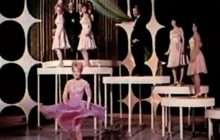 But Scopitones Inc. was pimping the likes of Neil Sedaka’s “Calendar Girl”, a song which was already five years old when the video was made. The closest they got to current was a sparkly Debbie Reynolds doing a bizarre cocktail-cabaret version of “If I Had a Hammer”. (Reynolds’ company Harman-ee Productions was contracted to produce most of the American Scopitones, a deal she would later regret.)
