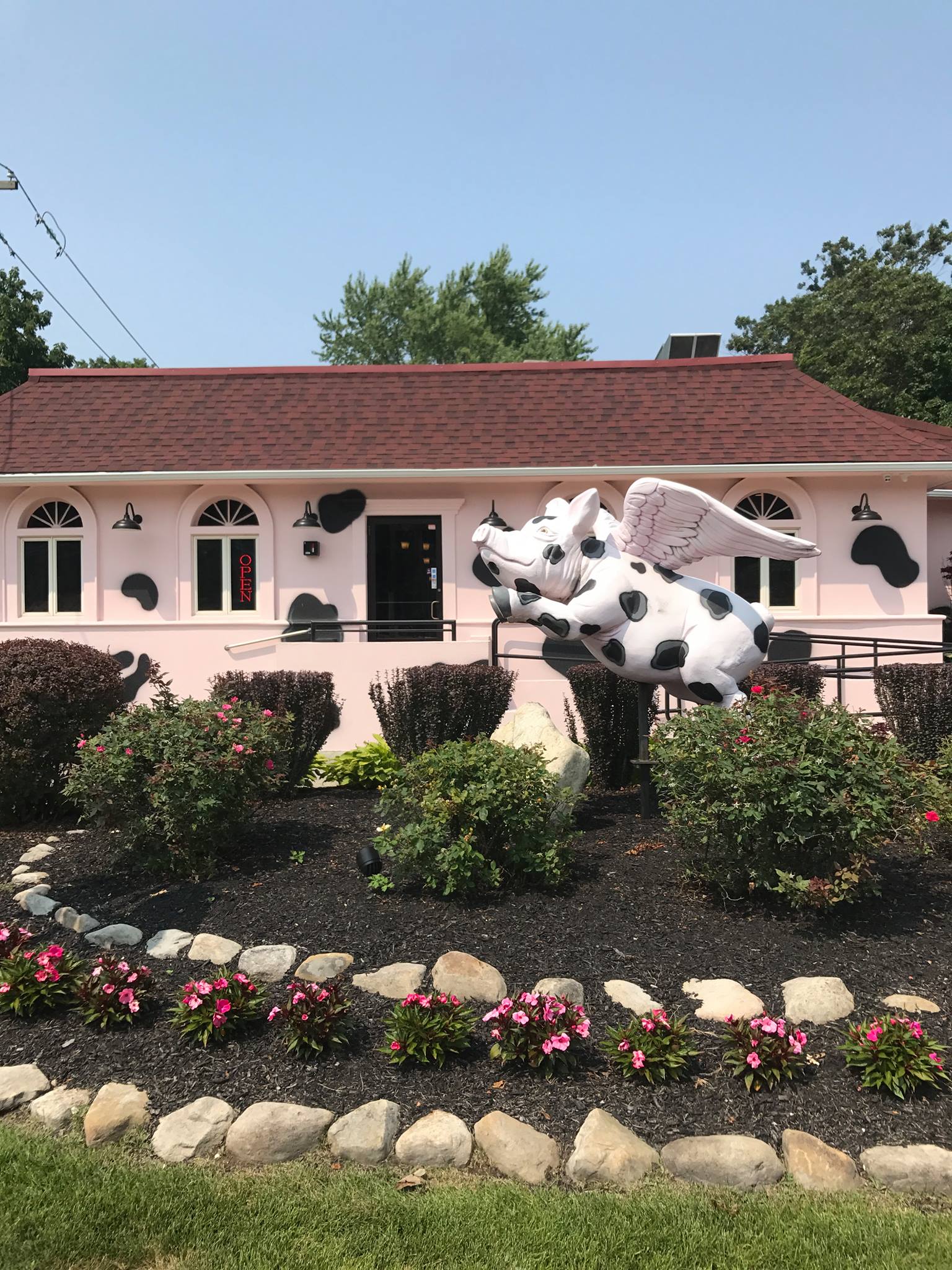 This charming, local restaurant is the Flying Pig Cafe. In addition to the giant flying pig outside, the inside has a pig-themed décor. Unfortunately the owner’s husband recently passed away, so the restaurant is permanently closed. We don’t know the fate of the pig statue.
