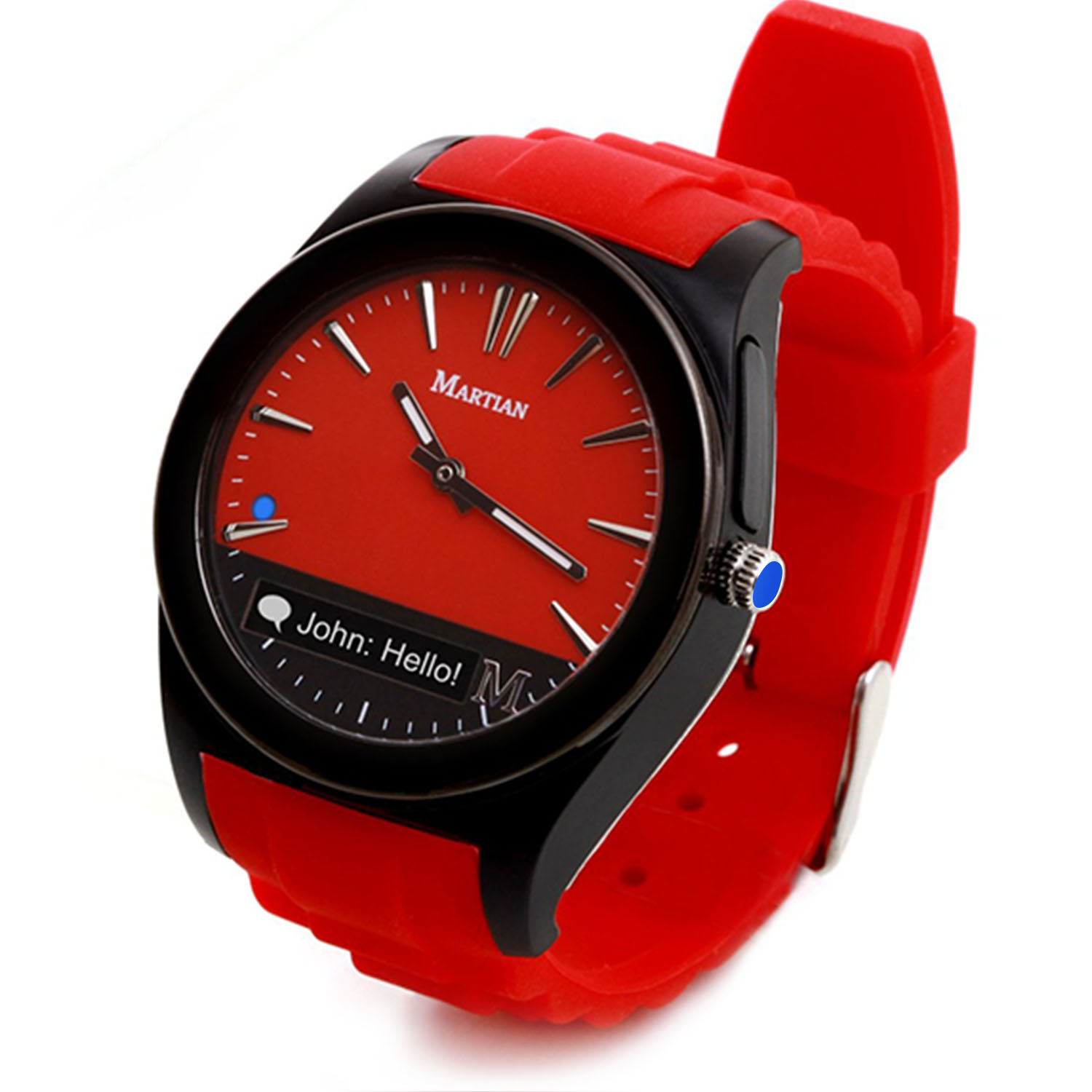 Specs ==== - Model: MN200BBB, MN200RBR, MN200WBW - App notifications from social media, news, fitness, sports, and other apps - Customizable vibration patterns - Remote camera shutter control - Silent alarms - Wireless leash vibrates if you leave your phone - Find your phone by tapping on your watch to make it ring - Digital world clock - Analog quartz watch with Japanese movement - Upper Command Button - Lower Select Button - 96 x 16 pixel graphic OLED display - Bluetooth 4.0 chip (classic Bluetooth and Bluetooth low energy) - RGB LED light - Light Touch Vibrating Motor - 3-Axis Accelerometer - Silicone band with stainless steel clasp - Band Width: .87 inches (22mm) - Band Length: 8.19 inches (20.8cm) - Band Fits: 5.75 8.0 inch (15.24 21.6cm) wrist - Band Thickness: .14 inches (3.5mm) - Anti-scratch acrylic crystal - Micro USB port for recharging and firmware updates Power: - 7 days of use time (separate analog watch battery will run for up to 2 years) - Built-in lithium polymer rechargeable battery - Up to 2 hours charging time - Charging via USB to computer or power adapter Compatible with: - iPad Air, iPad mini, iPad (3rd generation), iPhone 6, 6 Plus, 5, 5C, 5S, 4S - Android Phones and Tablets 3.0 or later - Quick connect guide - iOS user manual - iOS app - Android app - Android user manual Condition: New Warranty: 1 Year Martian Estimated Delivery: 1/22 - 1/24Shipping: $5 or free with VMP What’s in the Box? ==== - Martian Notifier Watch - Micro USB Cable - Quick Connect Guide Pictures ==== Options Paired with your phone White Side view of whiteBlack Side view of black RedSide of red Price Comparison ==== $38.95 for Red (fulfilled by Amazon) $36.25 for Black (fulfilled by Amazon)$34.99 for White (fulfilled by Amazon) $85.02 for White (sold by Amazon)Find a relevant price comparison? Please share it in a comment in this thread