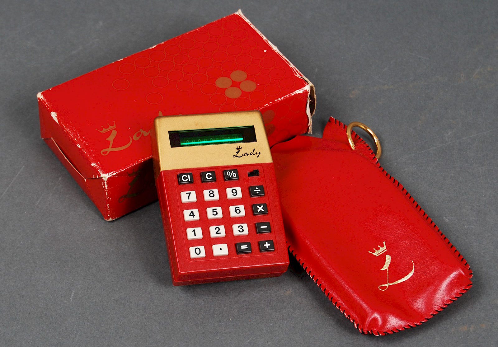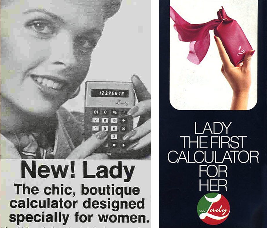 “The chic, boutique calculator designed specially for women,” ran the ads that started appearing in fall of that year. “The Litton/Adler ‘Lady’ is the only electronic calculator specifically designed for milady.” [shudder] You can feel the ad tipping its fedora. “Ruby red and gold tone create a truly striking conversation piece… slips easily into the smallest purse.”