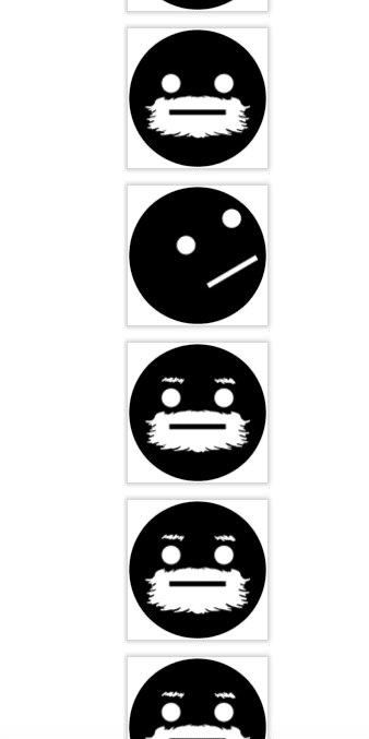 Original images for reference. I’m not sure if beardface is out of order, or like that on purpose, but I verified the order is how meh listed it.