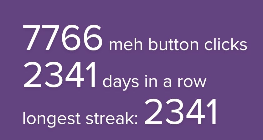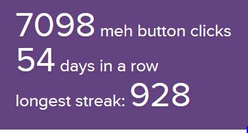 It almost convinced me to experiment with not clicking “Meh” every day. By which I mean to say that I contemplated it for almost a minute.