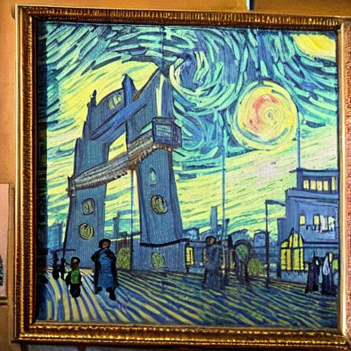 /showme 2 idiots glued to a london museum wall in the style of van gogh.