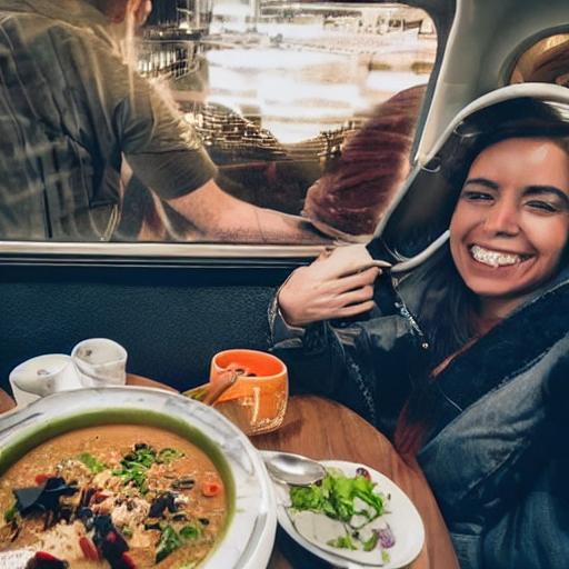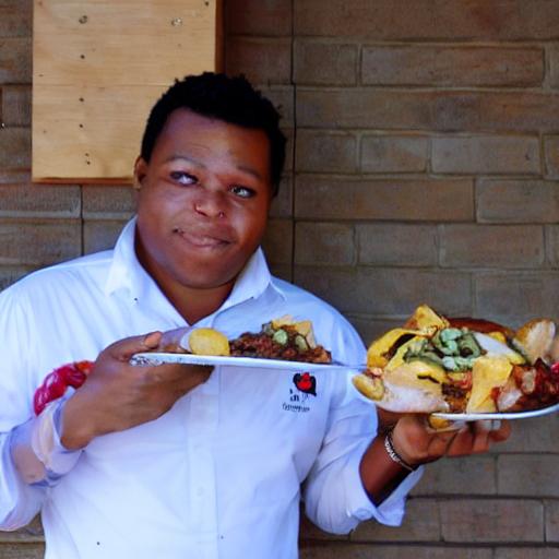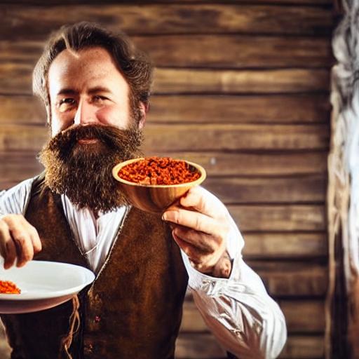 /showme bearded cowboy eating a bowl of chili but it’s actually human teeth, in a saloon
