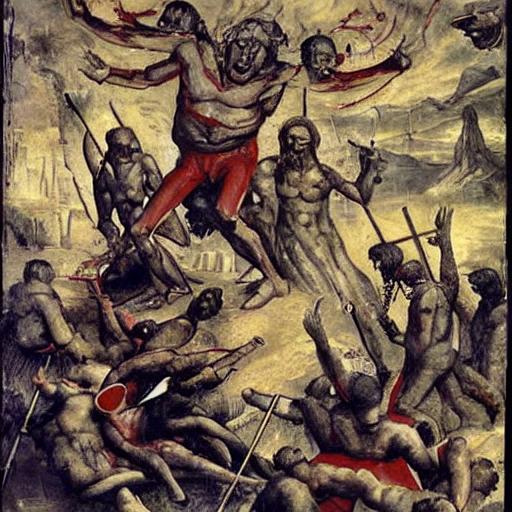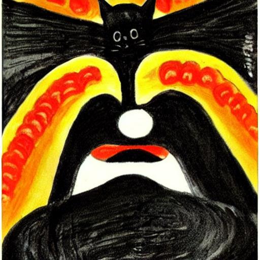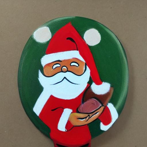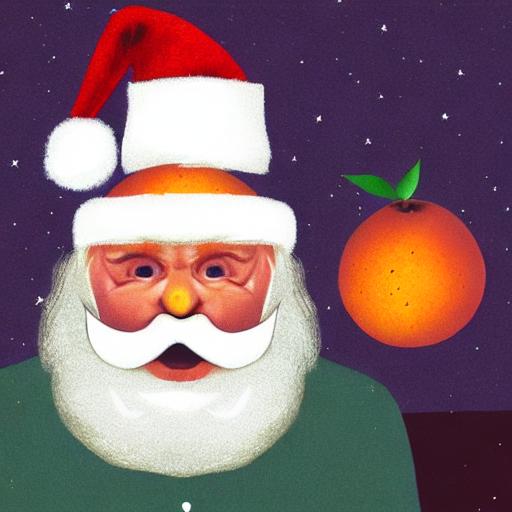 /showme evil Santa eating a very squelchy apricot, acrylic paint