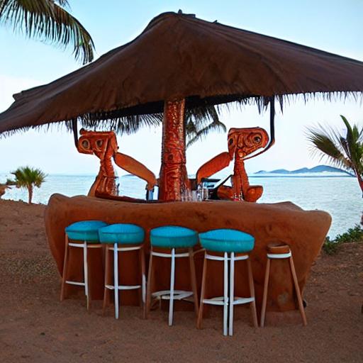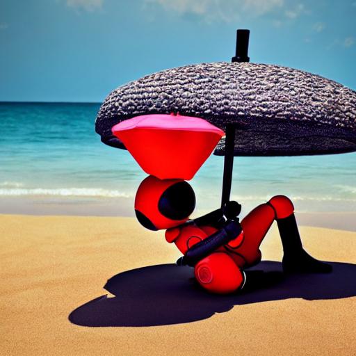 /showme mediocrebot enjoying a margarita on the beach under an umbrella