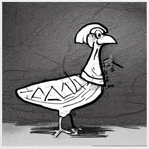 /showme a sketch of a turkey who has been hired for his artistic talents as a traveling courtoom sketch artist in order to evade detection by the hungry masses