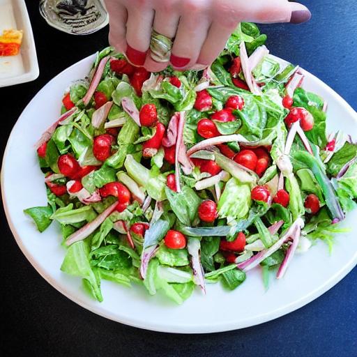 /showme salad made of potatos and toes with painted toenails, on a picnic table