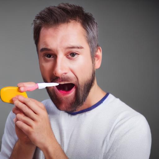 /showme regular man with totally normal hands holding a toothbrush, realistic