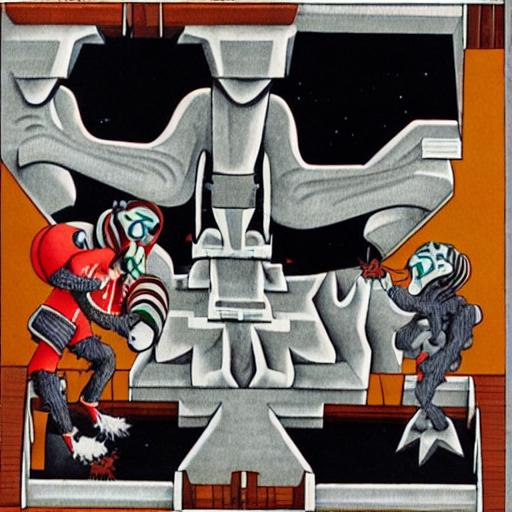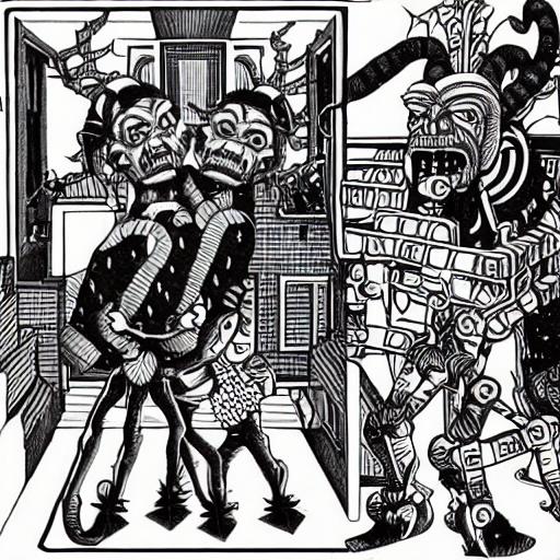 /showme Krampus and Mediocrebot dancing the Frug in the style of Escher