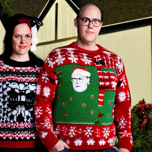 /showme American Gothic in ugly Christmas sweaters, style of Grant Wood