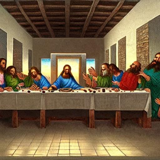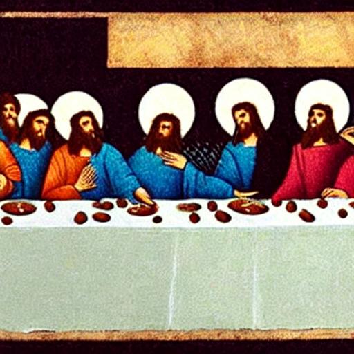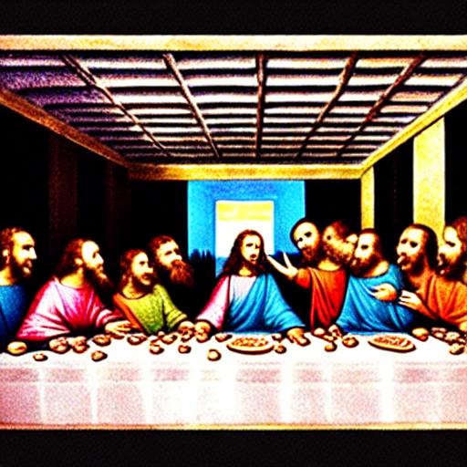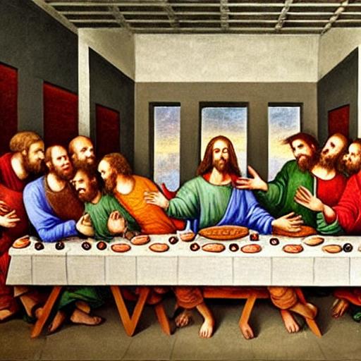 /showme the last supper, but with football fans eating pizza and drinking beer, realistic