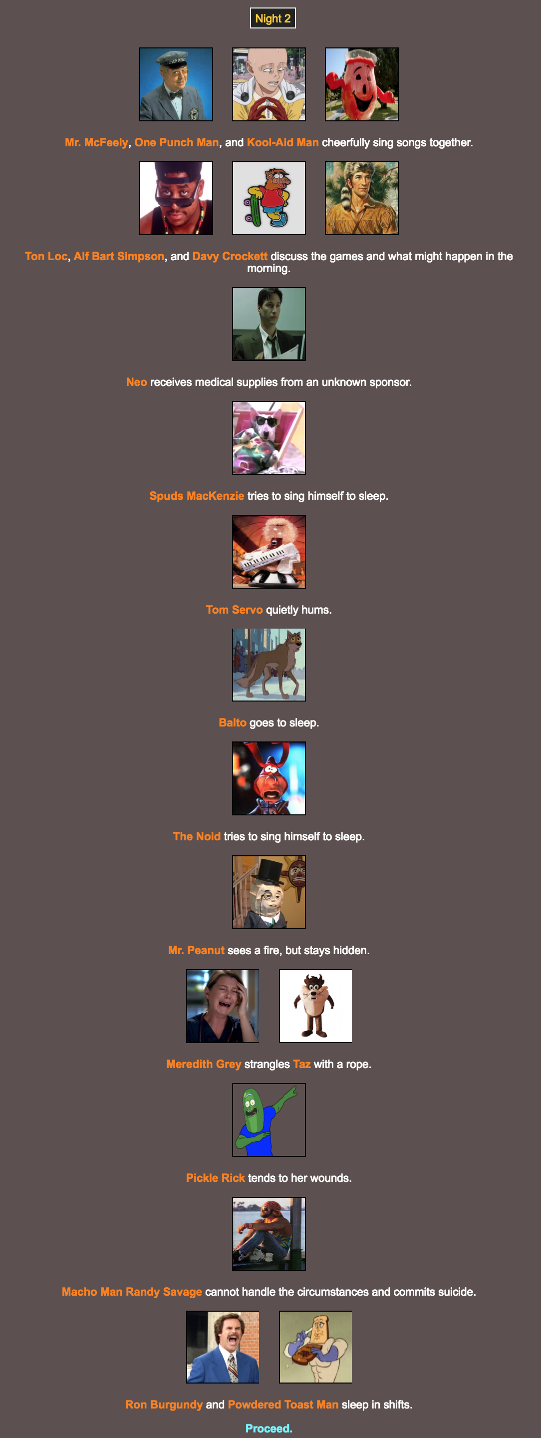 Well, this could prove to be interesting to watch. Some interesting characters here. I’ll vote for The Noid. Just cause I can. Hell probably die soon. But yeah. Let’s see how he fares