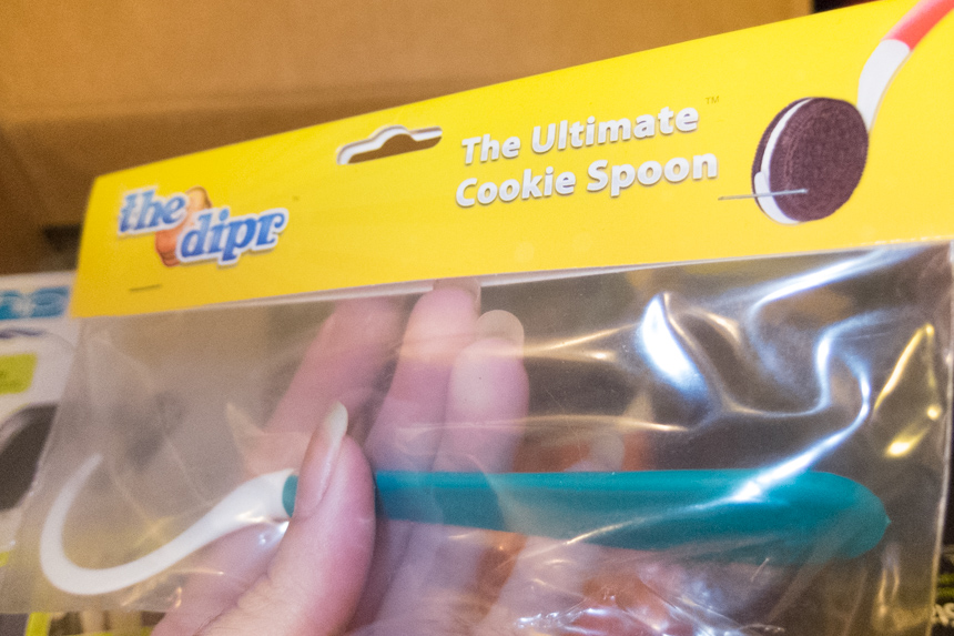 A utensil solely for dipping Oreos into milk. Does not say anything about Oreos Thins compatibility. Does not say anything about soymilk compatibility.