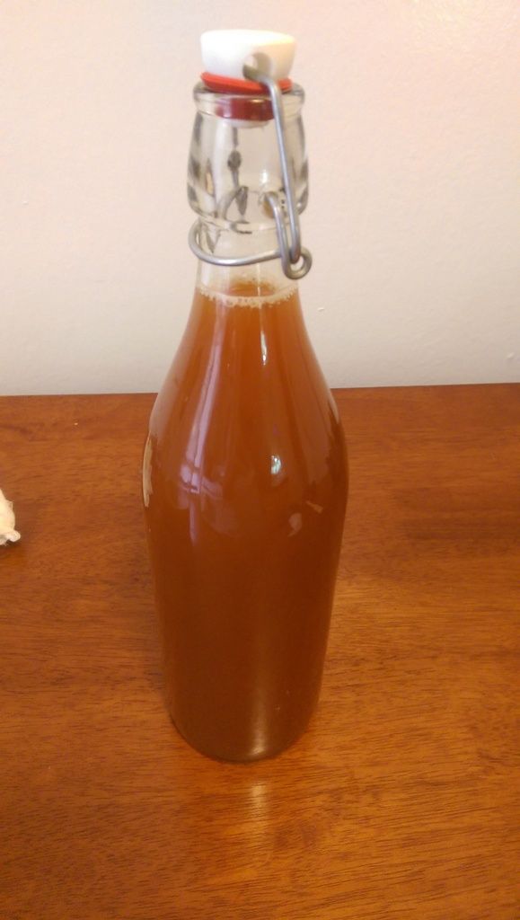 it floats there on top and does magic. basically the yeast does what yeast does, eats sugar and turns it into alcohol. but then the bacteria here turns that alcohol into acetic acid. what you get is a fizzy, tart-to-sour drink that tastes like an apple cider vinegar. or if you just want vinegar, you let it riiiide.