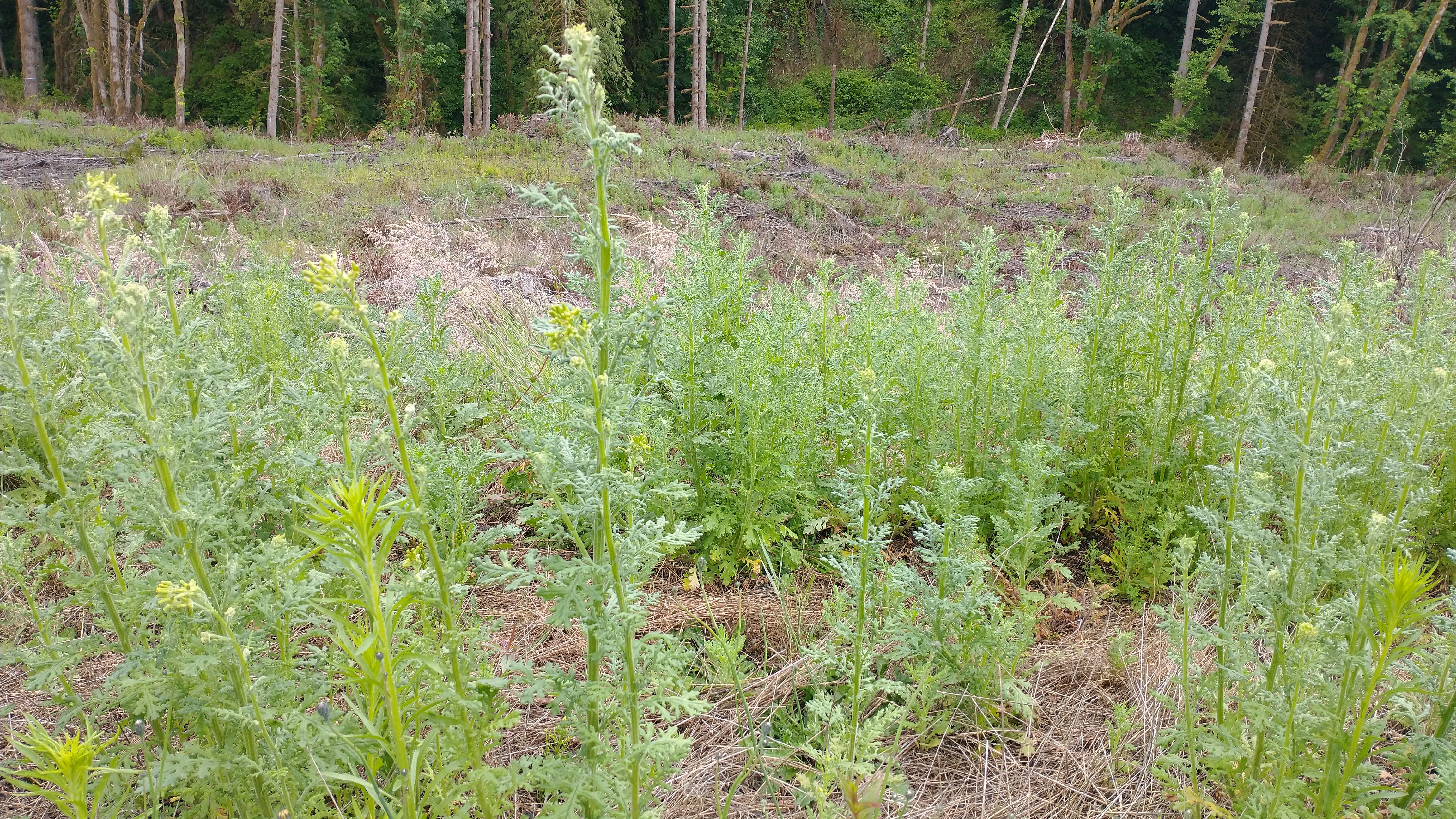 I was walking along and noticed a sweet, herbal smell. Looked around and, yep, the Wormwood is up (Absinthe, anyone?).