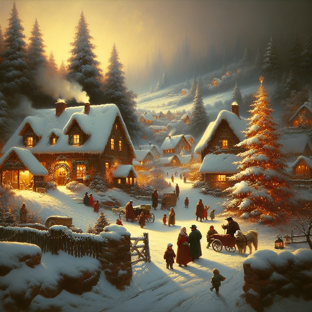 /showme a Christmas Day scene in the style of a Terry Redlin painting