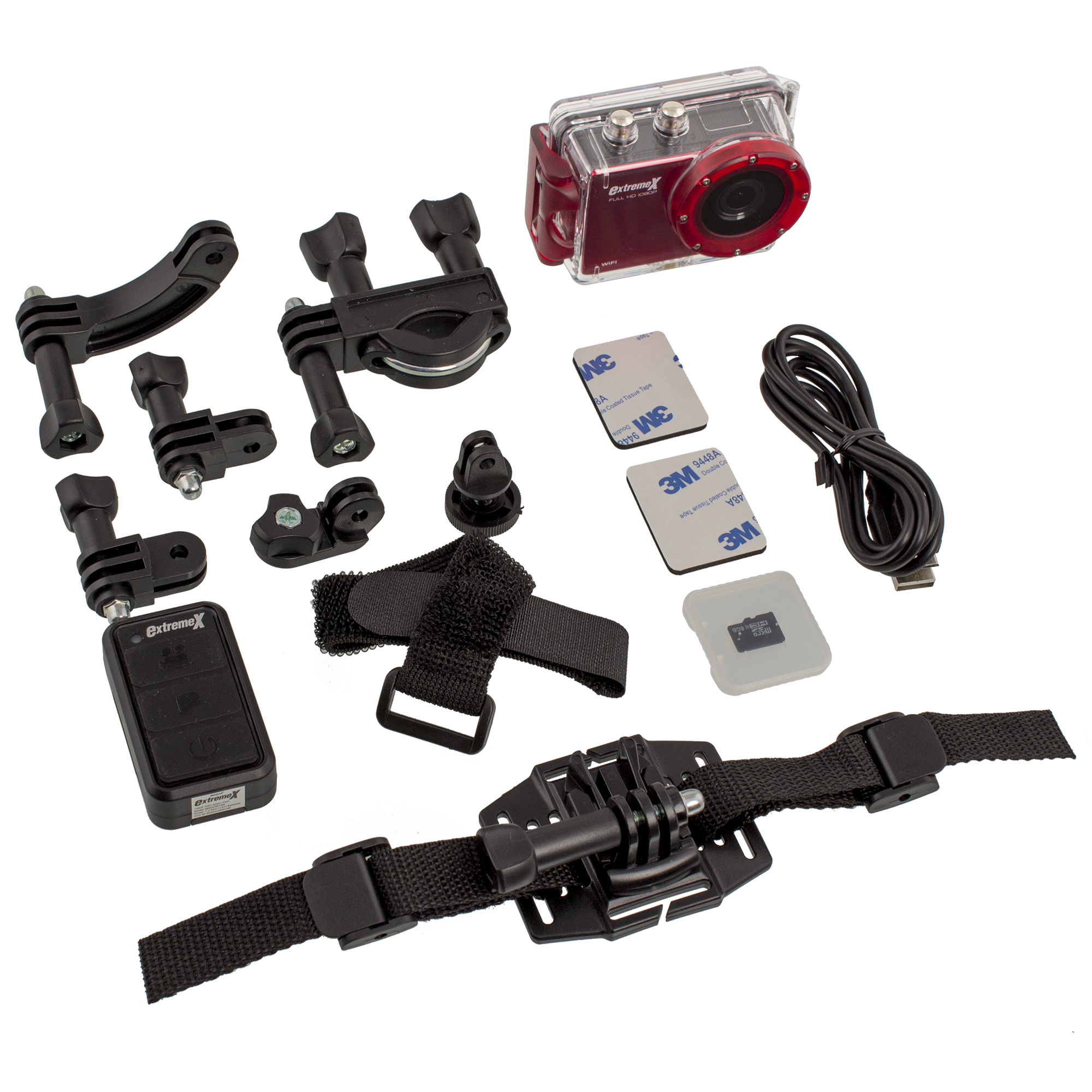 Specs ====- Model: MGOVSO15R, MGOVS015B, MGOVSO15K- Condition: New- 1080P @ 30fps, 720p @ 60fps- 5MP CMOS sensor up to 12MP snapshots- 1.5" preview screen- Waterproof up to 45m- Built-in microphone- Includes 8GB microsd card, compatible with up to 32GB- 2.5Ghz remote control- Video streaming to smartphone or table via ExtremeX app- HDMI output- Slow motion and time lapse modesWhat’s in the Box? ====1x Camera1x Waterproof case1x 8gb micro sd card1x Bike mount1x Remote and strap1x Helmet mount and strap2x 1/4-20 UNC to GoPro mount adaptors3x gopro mount angle changersPictures====OptionsBlueBlackRedEverything includedRemoteRed no caseScreenSideBox7D video!Price Comparison====$149.95 at Amazon
