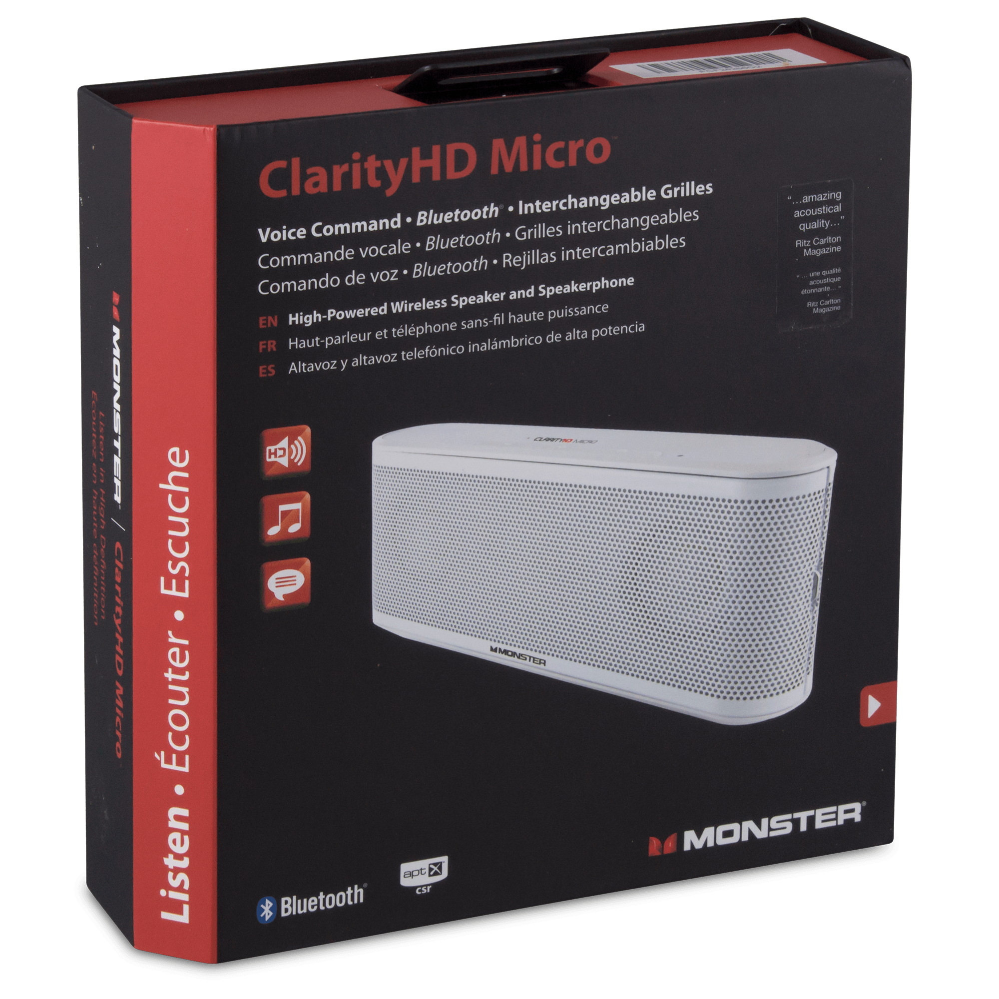 Featured on the box: "...amazing acoustical quality..." - Ritz Carlton magazine. If you can't take the word of Ritz Carlton, you can't take the word of anyone! Back in my BBY days, Monster was stressed as top of the line quality, with an inflated price to match. Will be passing on this Bluetooth speaker as I've typically had inconsistent connectivity with a variety of phones.
