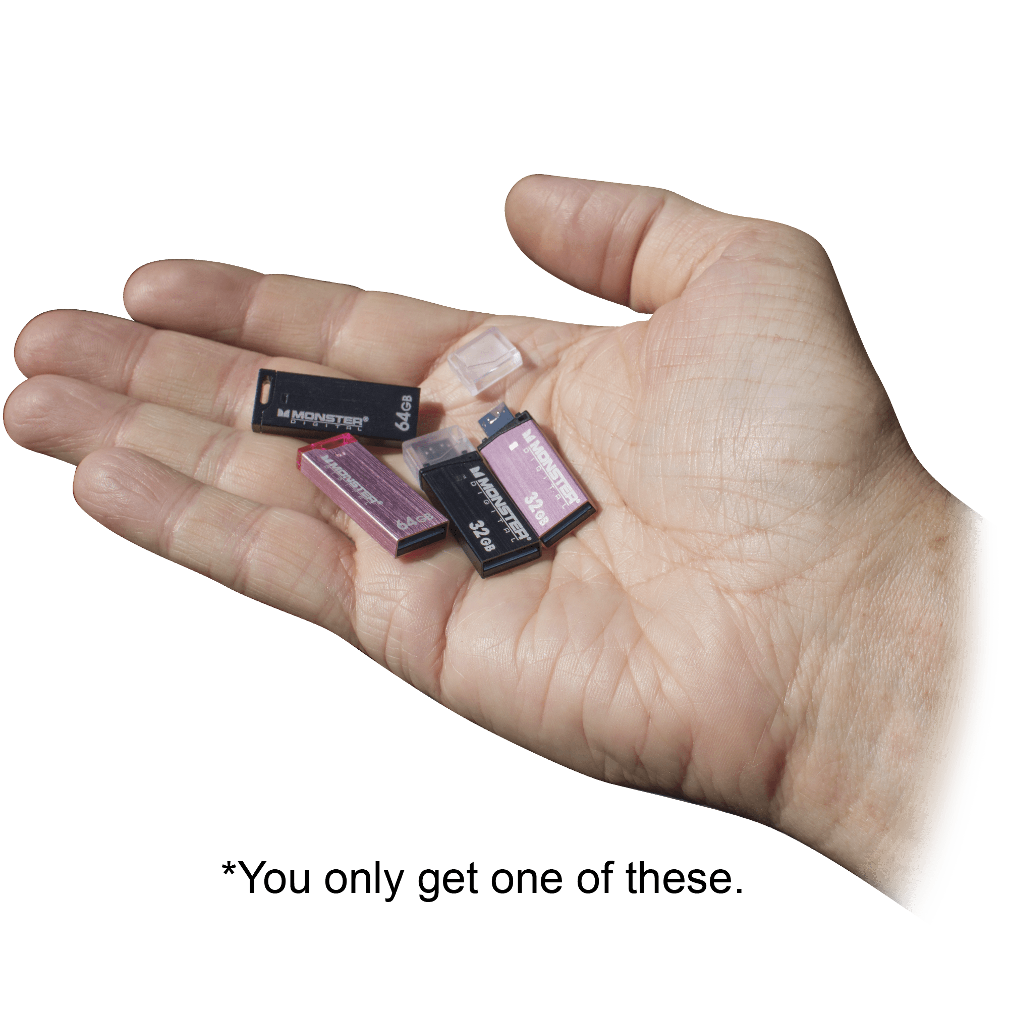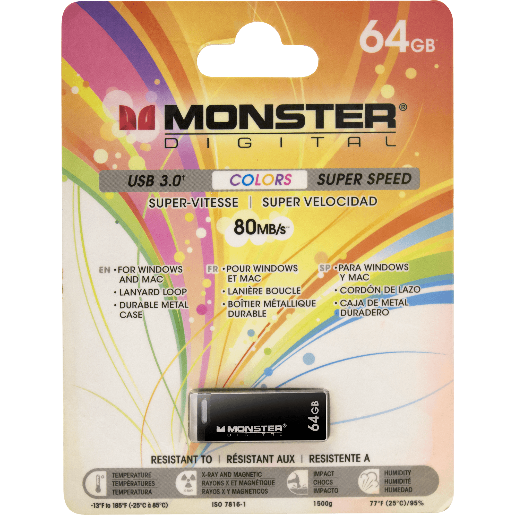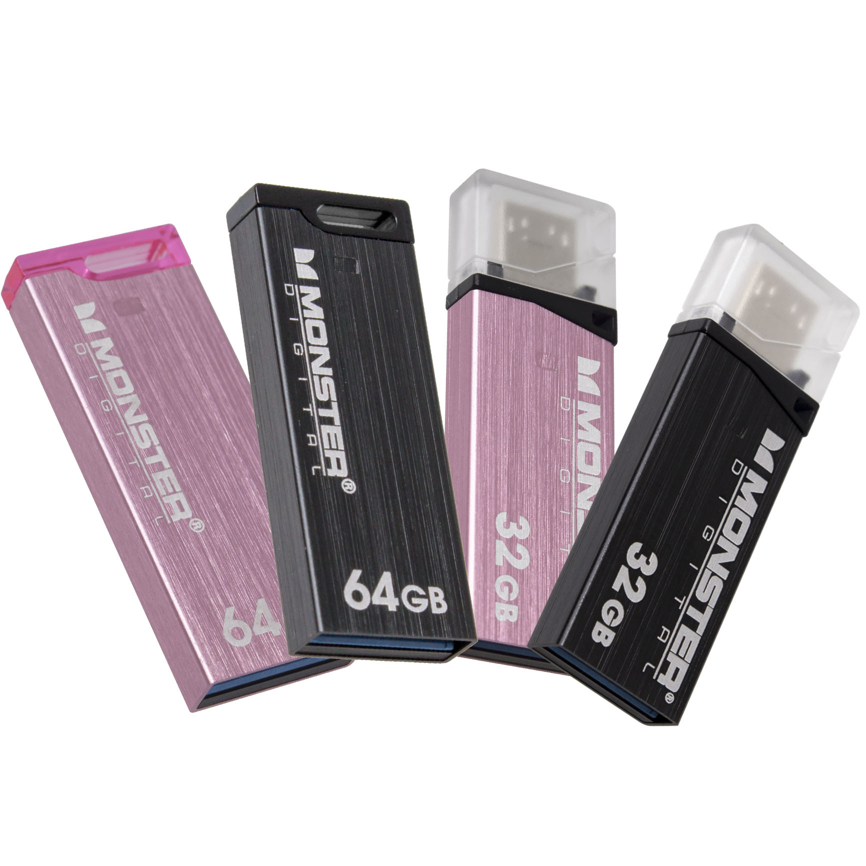 Specs ====32GB:- Model: USBOM-0032- Size: 32gb- OTG- Read speed: up to 80MB/s- Transfer data from smartphones and tablets via Micro USB- Transfer data from computers via USB 3.0- Metal case with protective plastic cap64GB:- Model: USBCL-0064- Size: 64gb- Read speed: up to 80MB/s- Transfer data from computers via USB 3.0- Metal case with lanyard loopCondition: New (with blemished packaging)Warranty: Lifetime Monster DigitalEstimated Delivery: 9/22 - 9/24Shipping: $5 or free with **VMP**What’s in the Box?====1x USB 3.0 drivePictures ====OptionsScale64gb black packaging64gb black64gb pink packaging64gb pink32gb black packaging32gb black32gb pink packaging32gb pinkDrive HengePrice Comparison====$30.94 List, $19.99 at Amazon for 32GB $44.99 List, $24.99 at Amazon for 64GBFind a relevant price comparison? Please share it in a comment in this thread