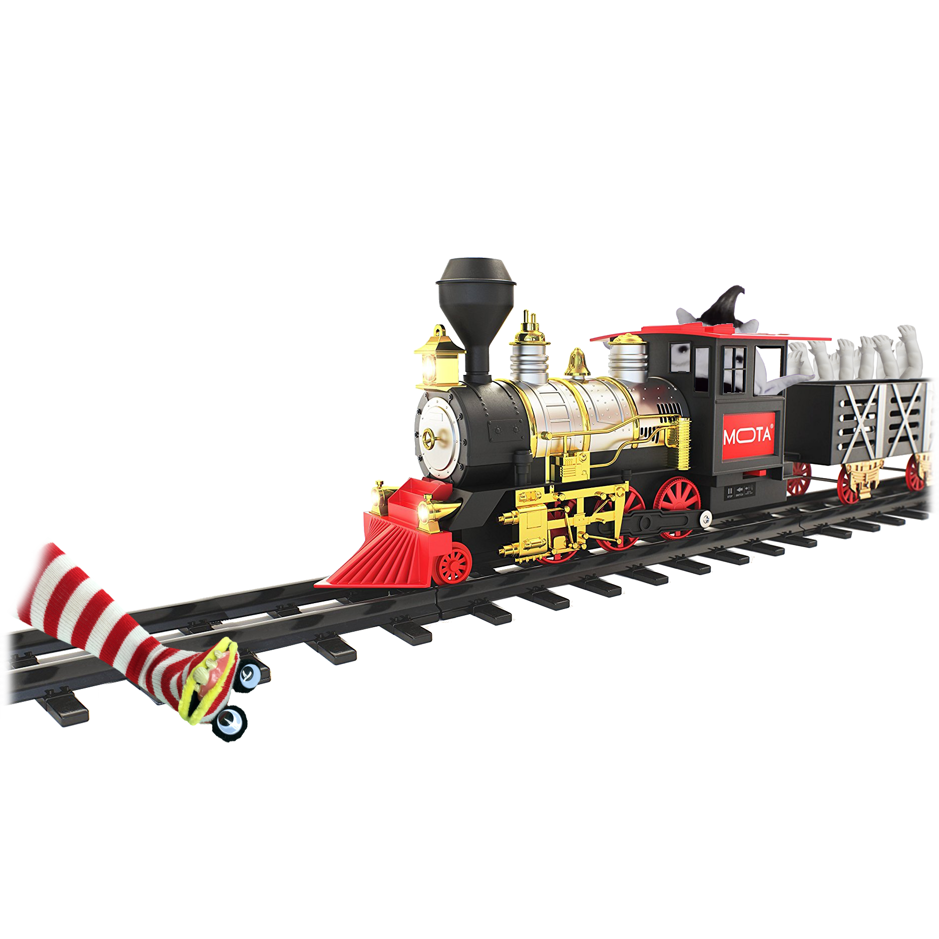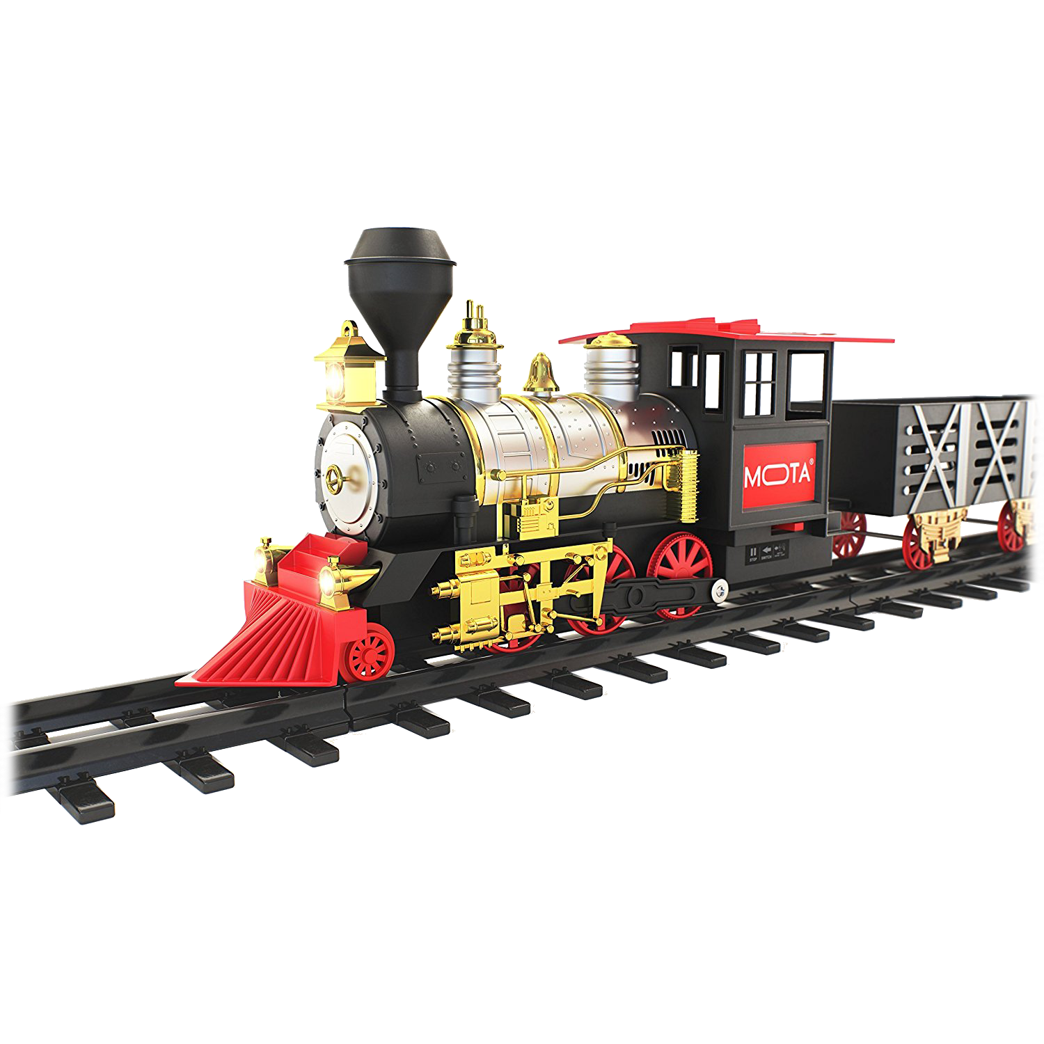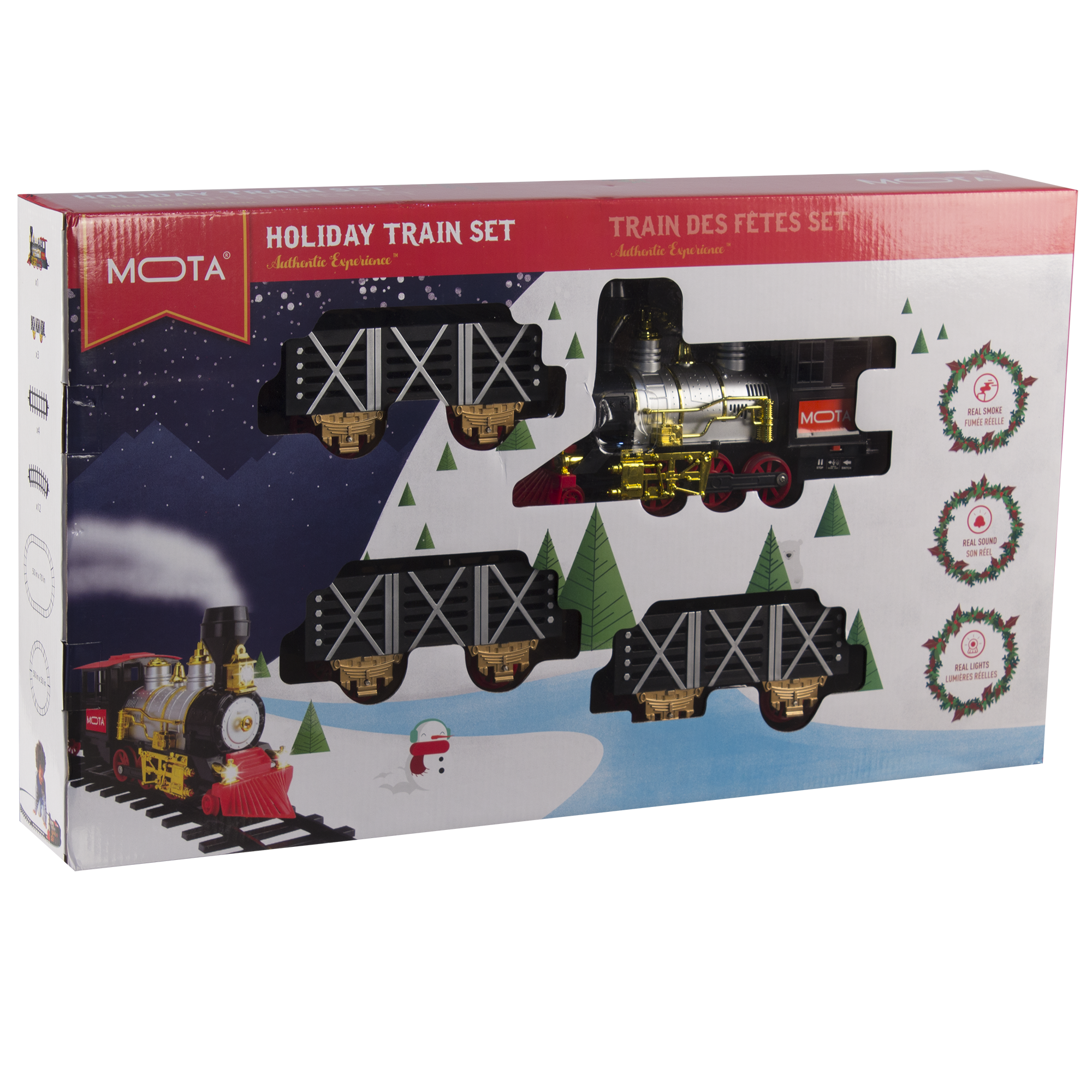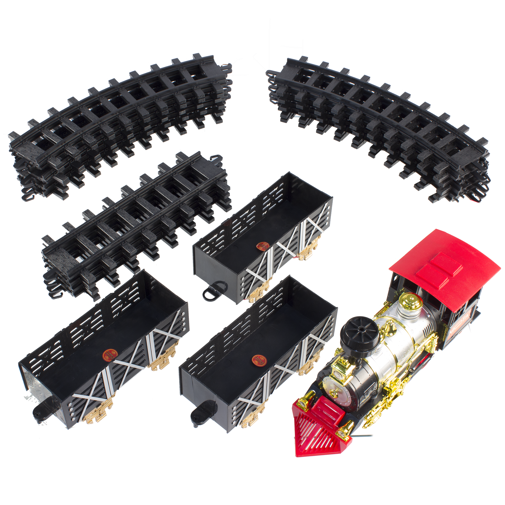 Specs====- Model: CLASSICTRAIN- Condition: New- Snap-together track pieces- Blows real smoke- Authentic Sounds and Working Lights (optional, don’t worry)- Runs on 4 AA batteries (not included)What’s in the Box?====1x Train Engine3x Train cars12x Curve Tracks4x Straight TracksPictures====Train Engine Kid playing with train ( kid not included)Everything IncludedTwo kids Playing with trainFront view of trainSide view of trainTrain carCouple tracksSmoke on/off switchPower SwitchAnother Lifestyle shotBoxRIP GlenPrice Comparison====$49.56 at Amazon