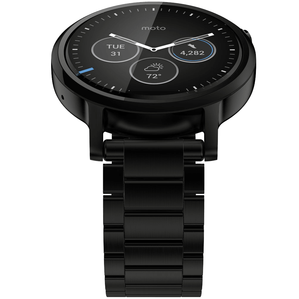 Specs ====- Model: 00826NARTL, 00817NARTL, 00819NARTL- Condition: New - Compatible with Android 4.3 or higher and iOS 8.2 or higher- Check compatibility on your phone at g.co/WearCheck- Display: - Corning Gorilla Glass 3 - Backlit LCD - Mens 42mm and Womens: 1.37 (35mm), 263ppi (360 X 325) - Mens 46mm: 1.56 (40mm), 233ppi (360 X 330) - Ambient light sensor automatically adjusts screen to the surrounding brightness.Heart rate sensor - Optical heart rate monitor (PPG).- Water-resistant - IP67 dust and water resistant. - Water resistant up to 1 meter and 30 minutes- Wi-Fi connectivity: - Stay in touch, even if your phone is beyond Bluetooth range.- Dimensions: - Mens case: 42mm/46mm diameter by 11.4mm high - Womens case: 42mm diameter by 11.4mm high - Compatible with standard 22mm straps- Hardward: - OS: Android Wear OS - Chipset: Qualcomm MSM8926 Snapdragon 400 - CPU: Quad-core 1.2 GHz Cortex-A7GPU: Adreno 305 with 450MHz GPU- Sensors: - Accelerometer, Ambient Light Sensor, Gyroscope, Vibration/Haptics engine- Battery: - Mens and Womens 42mm: 300mAh (Up to 1 - 1.5 days mixed use) - Mens 46mm: 400mAh (Up to 1- 2 days mixed use) - Wireless charging with charging dock included- Memory: - 4GB internal storage + 512MB RAM- Connectivity: - Bluetooth 4.0 Low Energy - Wi-Fi 802.11 b/g- Misc: - Dual digital mics - Alert types: Vibration; MP3, WAV ringtones - Qi wireless charging - Voice dial/commandsUser manualWhat’s in the Box? ====1x Moto 360 Watch (2nd generation)1x Charging dock1x Wall charger1x Extra links (metal bands only)Pictures====Silver with leatherSilver with leather front viewBlack with metal bandBlack with metal band bottom viewBlack with metal band side viewBlack with metal band back viewSilver with metal bandSilver with metal band front viewSilver with metal band side viewPrice Comparison====42mm Silver with metal band: $349.99 List, $299.99 at Amazon42mm Silver with leather band: $510 at Amazon46mm Black with metal band: $495.85 at AmazonFind a relevant price comparison? Please share it in a comment in this thread