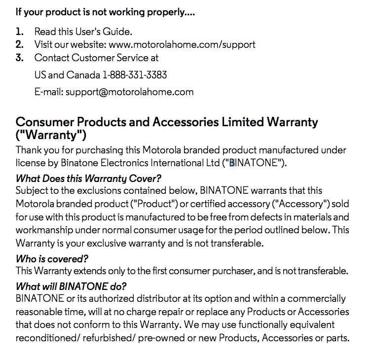 Motorola said to take the batteries out and reinstall them. Duh. Still didn’t work. They said I had to pay to ship it back for a replacement.
