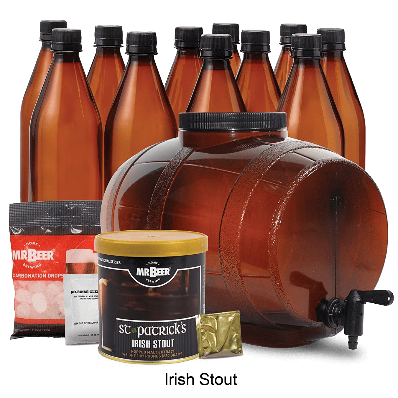 Specs ====- Model: 20977, 20950- Condition: New - Best by July 2017- Patented, reusable, easy-to-clean keg fermenter - Bottles: 25 oz. “designed for brewing” bottles with caps - Everything you need to make 2 gallons (16 pints) of beer (except water) - All of the equipment included is this kit is reusable - “An authentic blend of grainy roasted malt, malted barley and hops. This is a rich, dark brew exhibiting coffee and chocolate aromas, a perfectly balanced, roasted bitter character and dry finish” - Brewing extracts: all natural, GMO free, no added sugar - The proprietary brewing yeast is designed to perform well at a wide variety of temperatures What’s in the Box? ====1x Fermenting keg 11x Bottles with caps 1x Brewing extract 1x Packet of yeast 1x No-rinse sanitizer 1x Bag of carbonation drops Pictures====North AmericanKegAll the accessoriesNo kegstandsIrishPrice Comparison====St. Patrick’s Irish Stout Beer: $49.99 at Amazon North American Beer: $44.99 at AmazonFind a relevant price comparison? Please share it in a comment in this thread