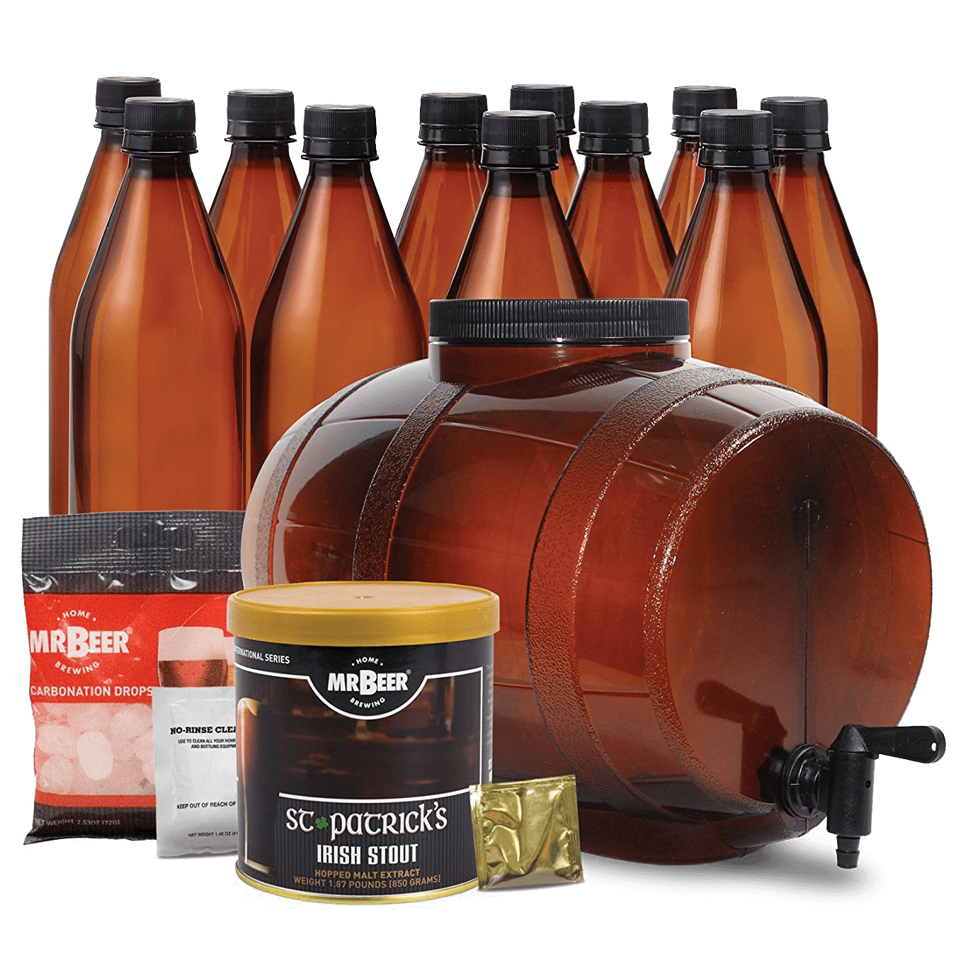 Specs ====- Model: 20977- Condition: New - Best by July 2017- Patented, reusable, easy-to-clean keg fermenter- Bottles: 25 oz. “designed for brewing” bottles with caps- Everything you need to make 2 gallons (16 pints) of beer (except water)- All of the equipment included is this kit is reusable- “An authentic blend of grainy roasted malt, malted barley and hops. This is a rich, dark brew exhibiting coffee and chocolate aromas, a perfectly balanced, roasted bitter character and dry finish”- Brewing extracts: all natural, GMO free, no added sugar- The proprietary brewing yeast is designed to perform well at a wide variety of temperaturesWhat’s in the Box? ====1x Fermenting keg11x Bottles with caps1x Irish Stout brewing extract1x Packet of yeast1x No-rinse sanitizer1x Bag of carbonation dropsPictures====Everything includedIrish StoutChug chug chug chugPrice Comparison====$44.44 at AmazonFind a relevant price comparison? Please share it in a comment in this thread