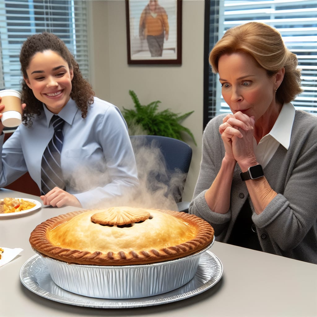 /showme savory family size chicken pot pie, steaming on a break room table. Nancy from HR is secretly impressed