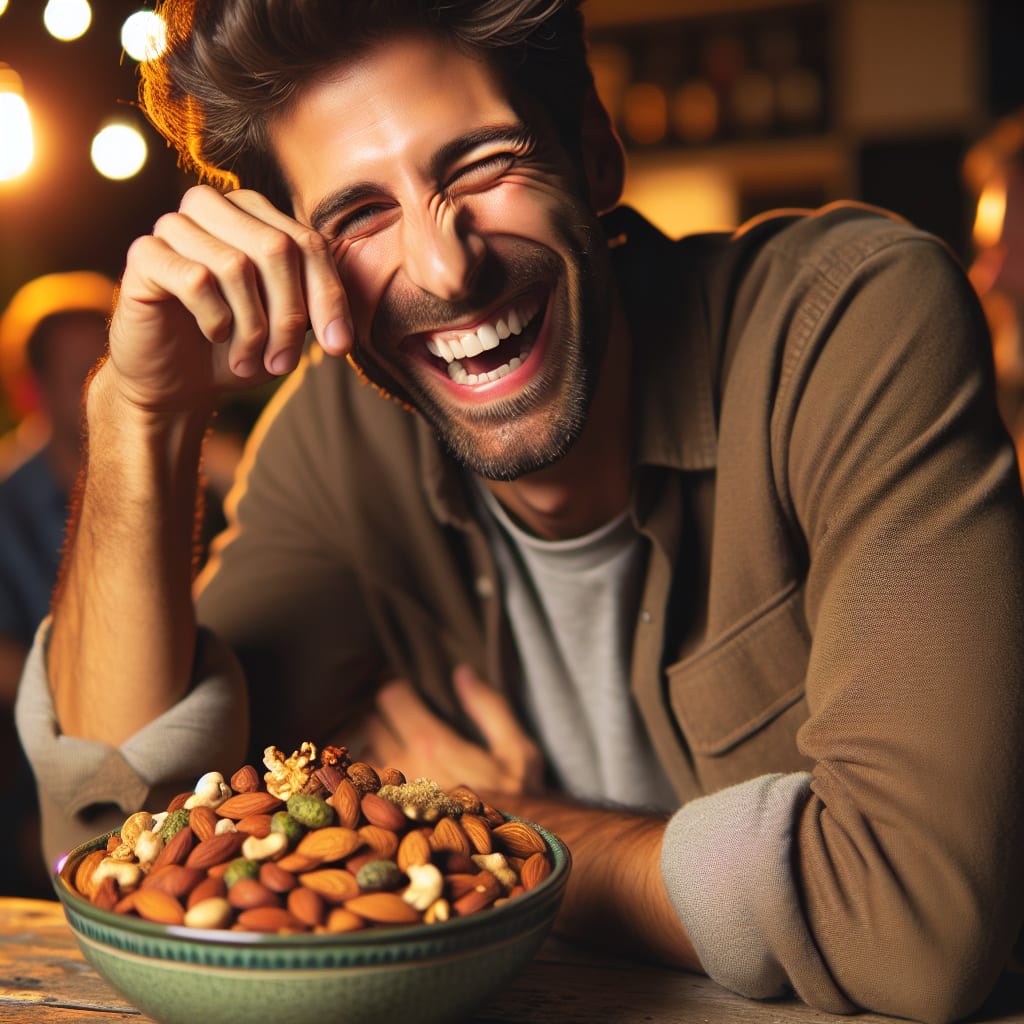 /showme bowl full of savory nuts. Guy just told a twss joke and is winking