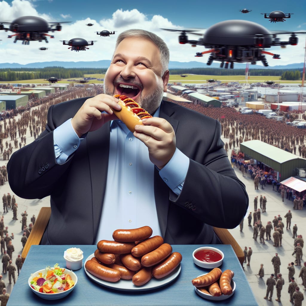 /showme Chris Christie eating Bratwurst at Ramstein Air Base surrounded by drones delivering sausage