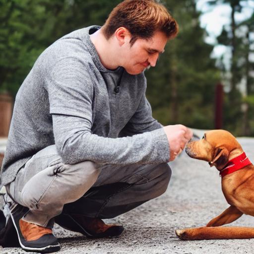 /showme man giving a dog a peanut butter treat