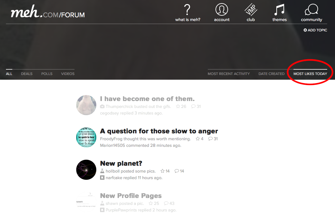 Before today you could click the star icon to give "votes" on topics, comments, and replies. You could sort forum topics by "most votes today" and sort comments by "most votes".