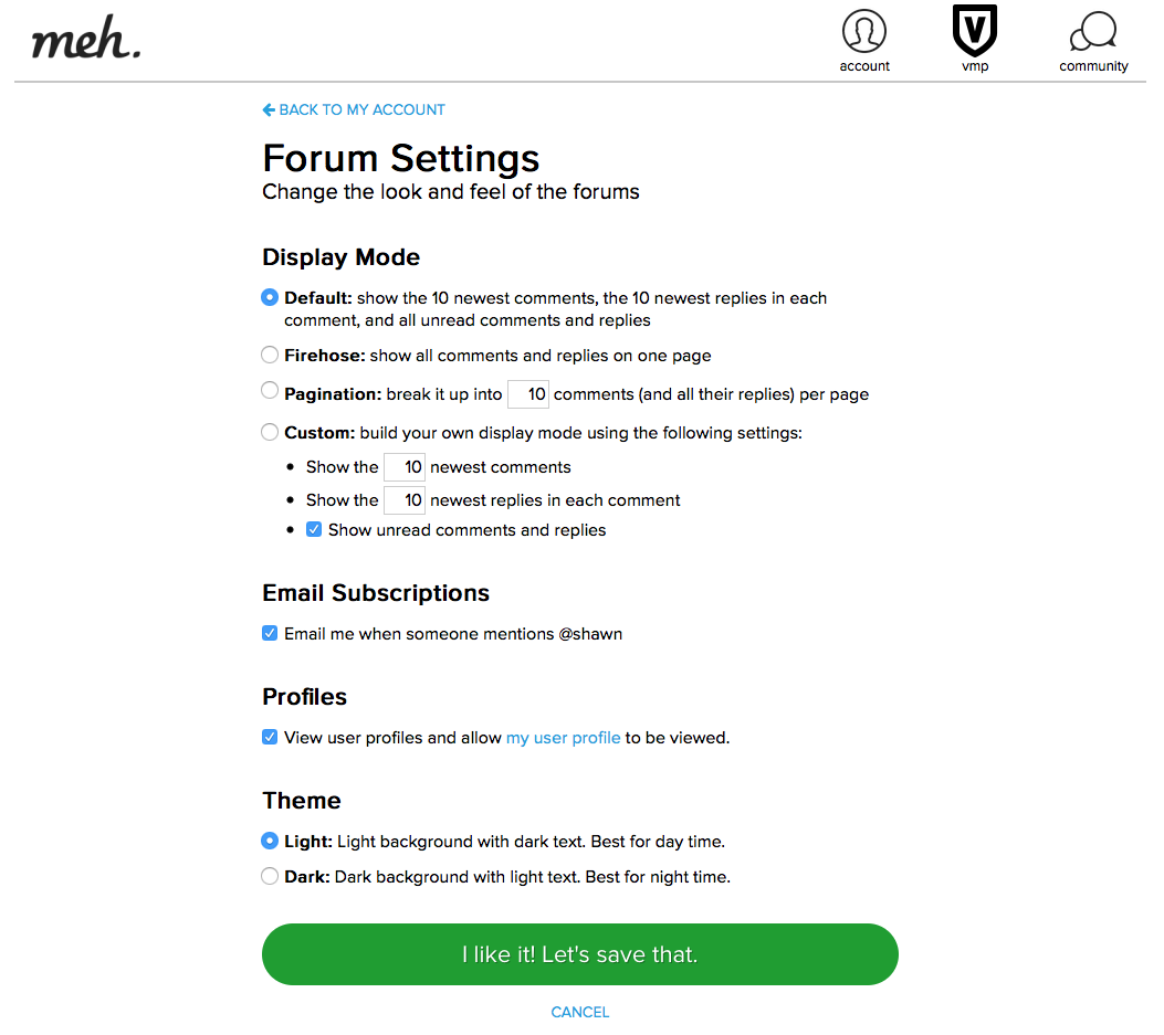 If nothing else, I hope the continual evolution of the new profile page over the past month (and the forum updates before it) where we're posting daily updates on changes we've made based on VMP member feedback demonstrate that we are, in fact, listening...