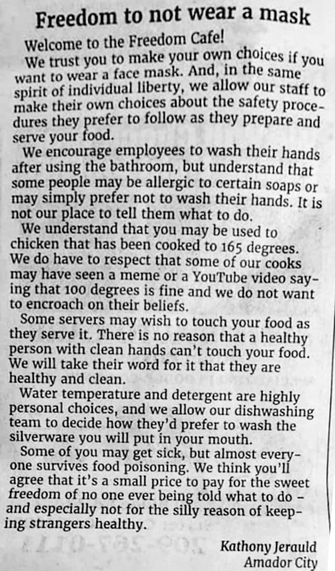 Good for them. I’ll have to spend some money there to show my support for their clear position to not cater to those who choose not to protect themselves or others.