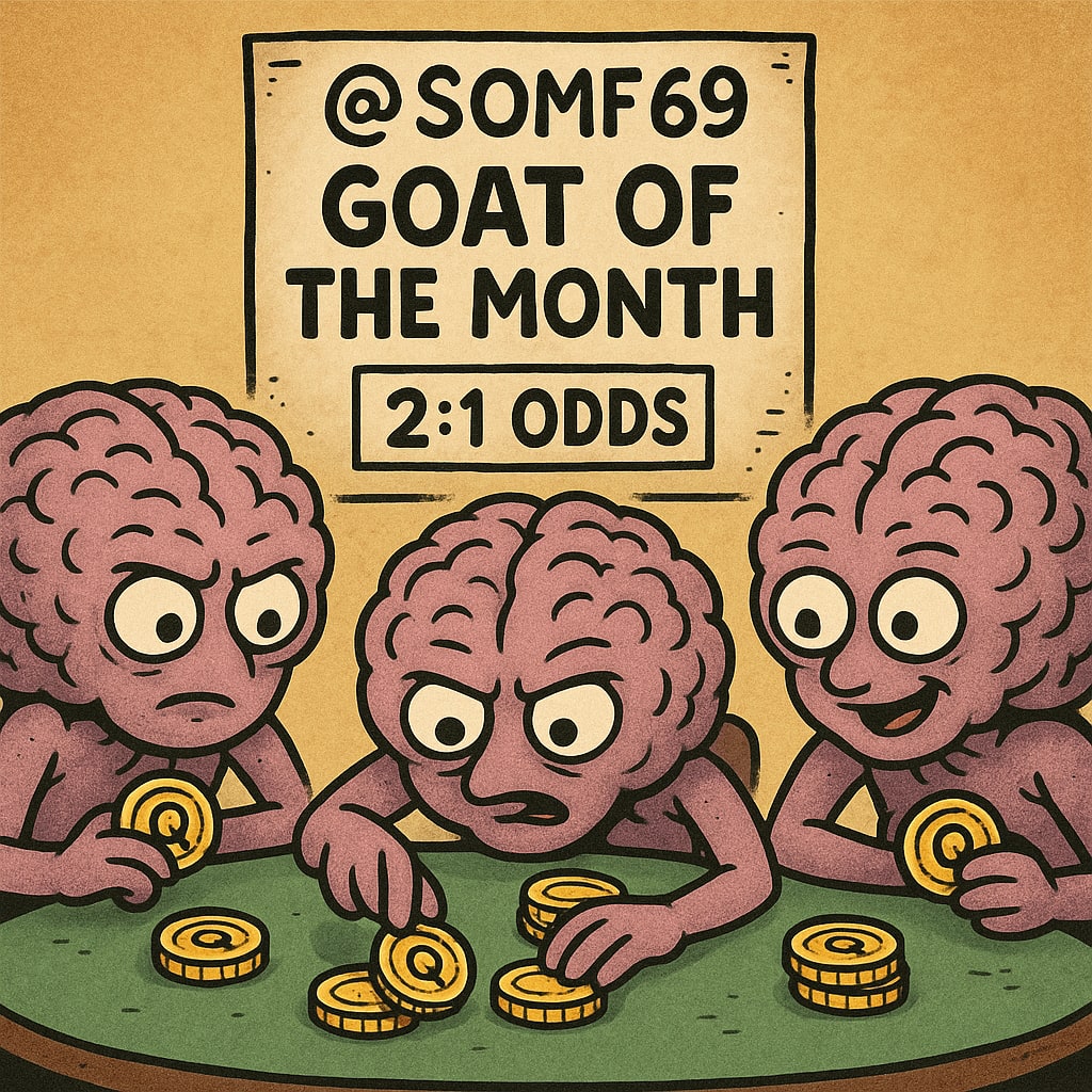 /showme Three brains betting quatloo-coin on the odds that “@somf69” will be goat of the month.