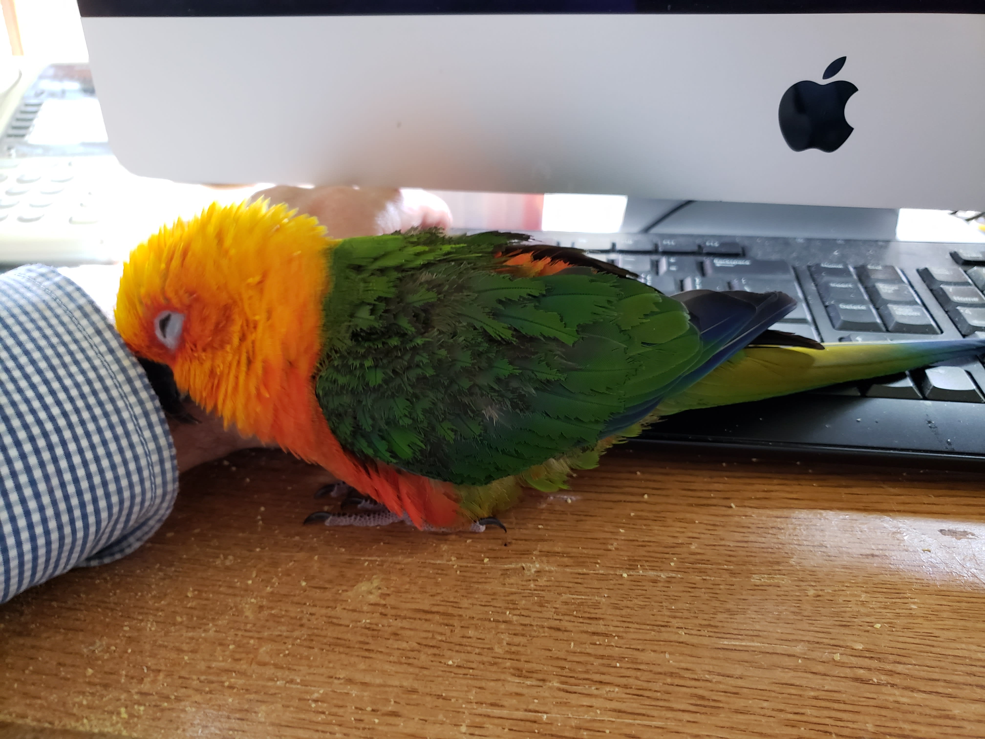 My bird sleeps all the time but it’s hard to catch him on the camera because once I get the phone out, he usually wakes up and attacks the phone.