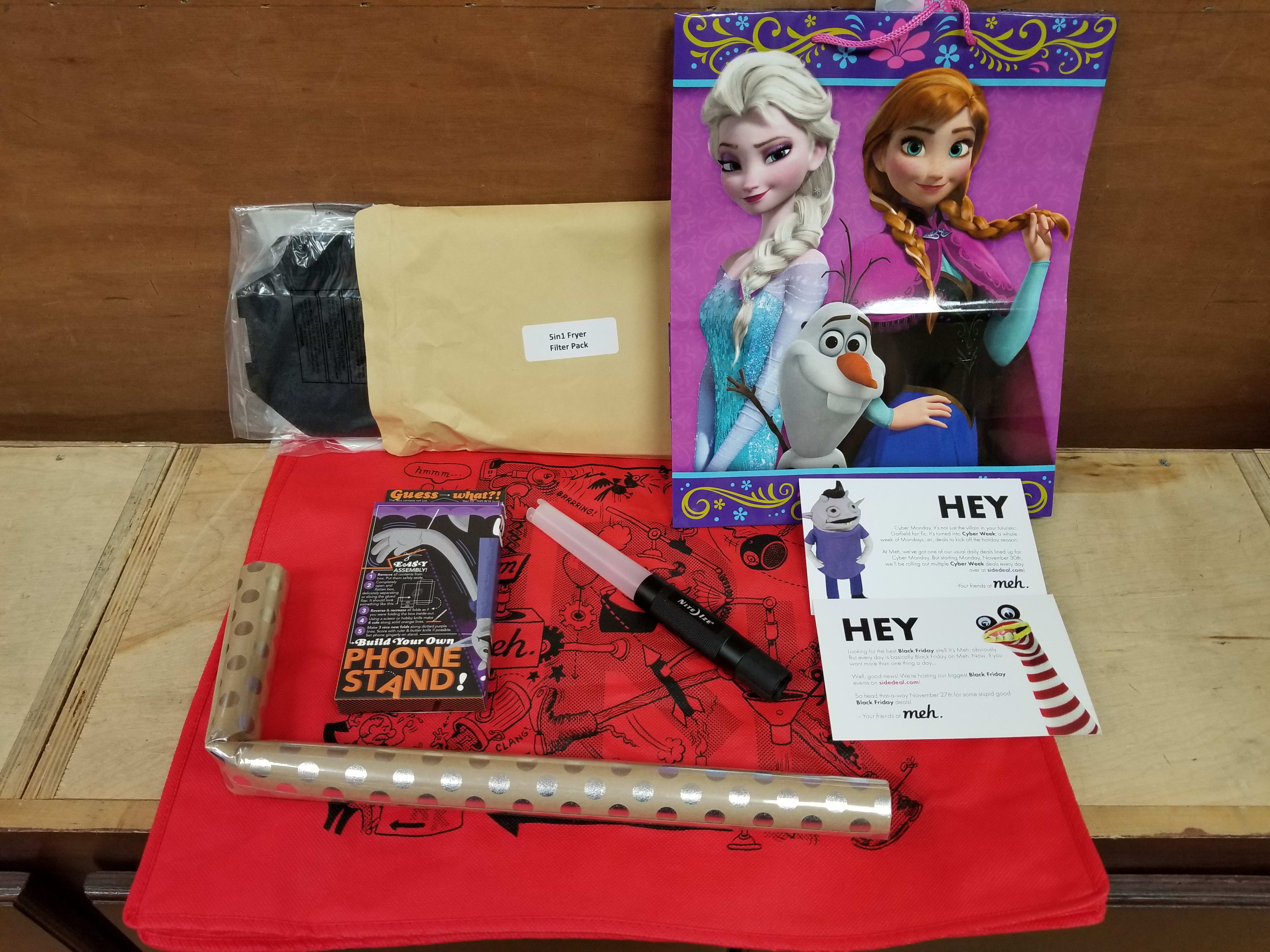 Not pictured, postcards with SideDeal codes for Black Friday and Cyber week, featuring Irk and Glen! Thanks, Meh!