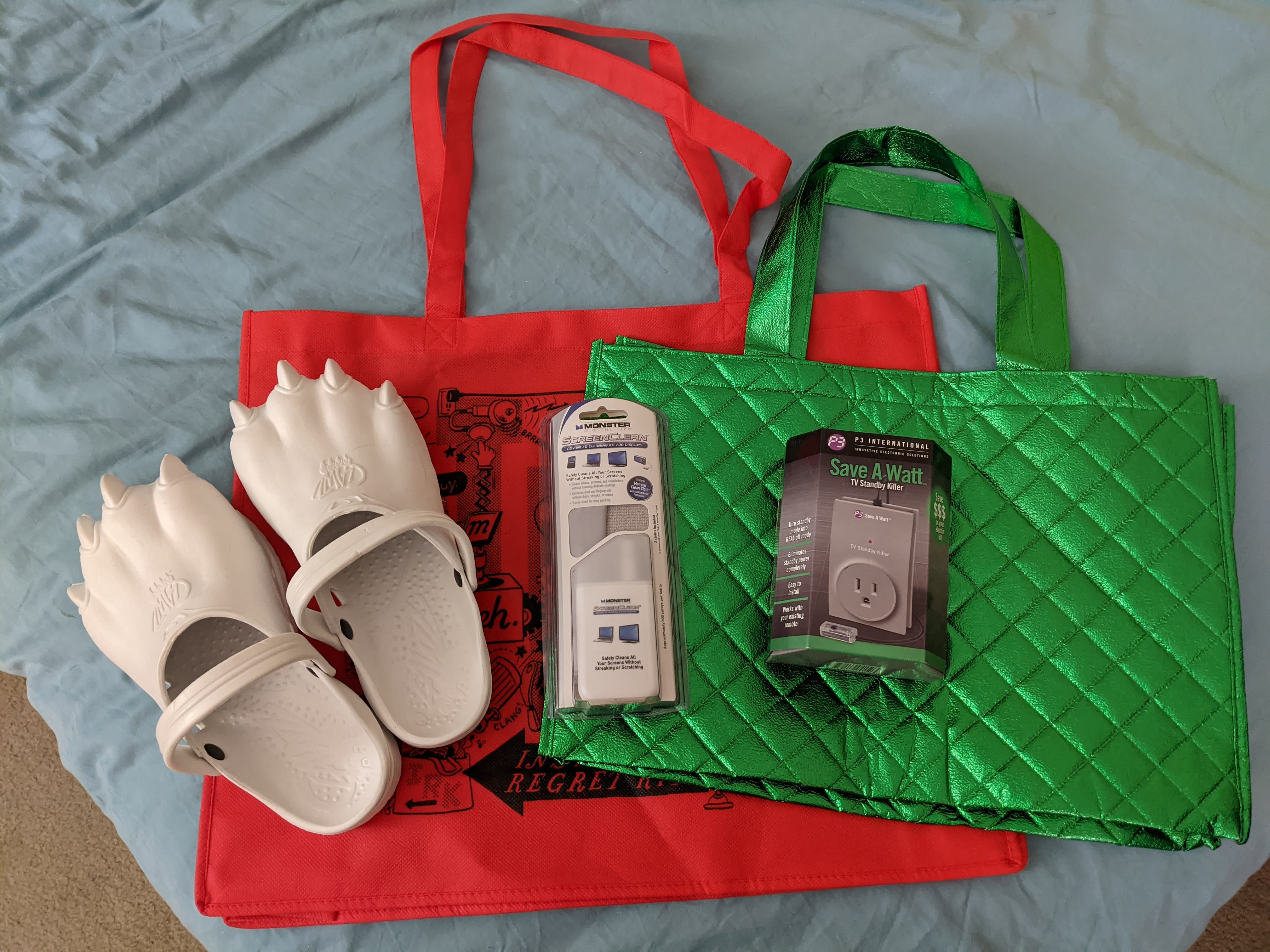 @JekiTheRogue I was told by one of the local charity organizations that they can sell these pre-packaged gift bags for $1 each in their stores - so please, don’t toss them in the trash, find someplace to donate them.