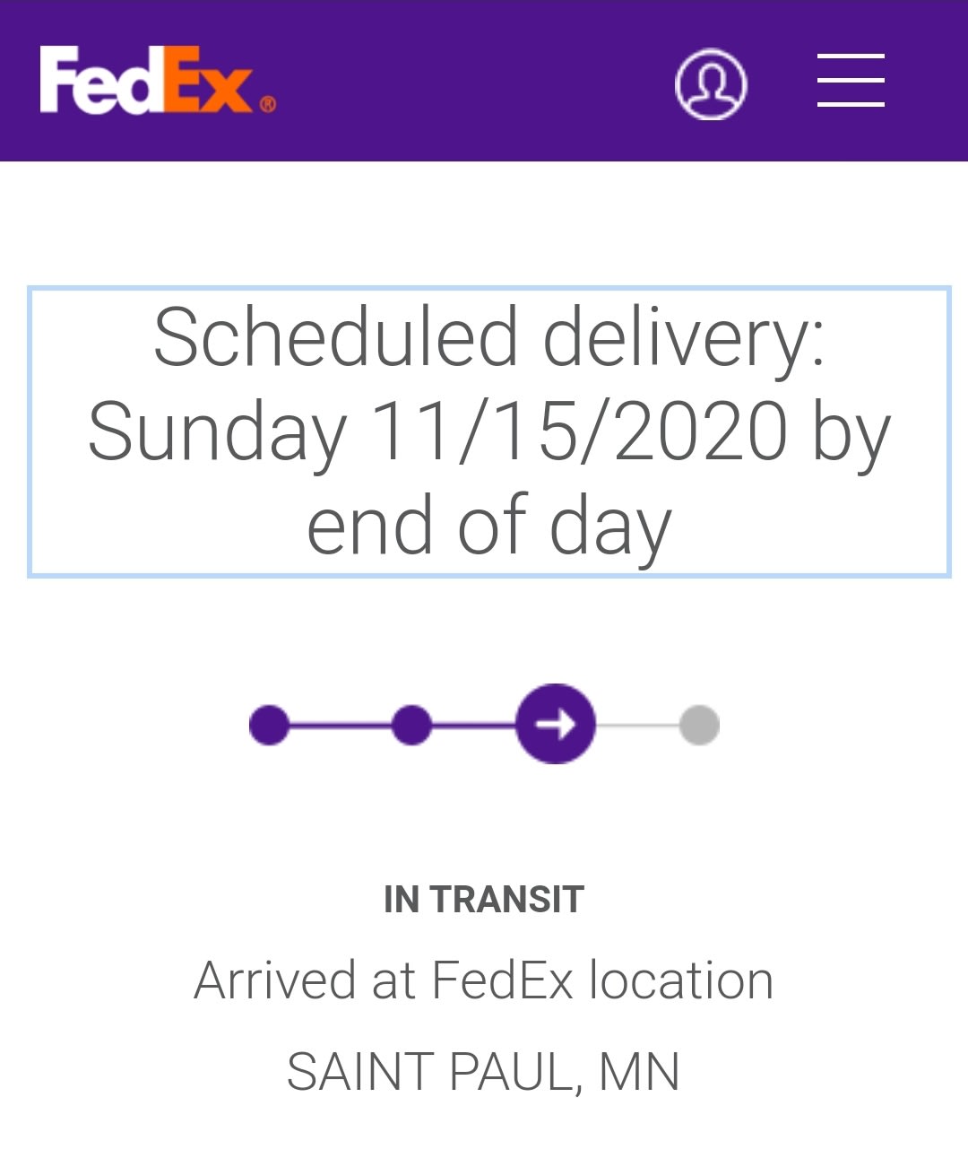 Projected arrival 55127 - Sunday, Nov 15.